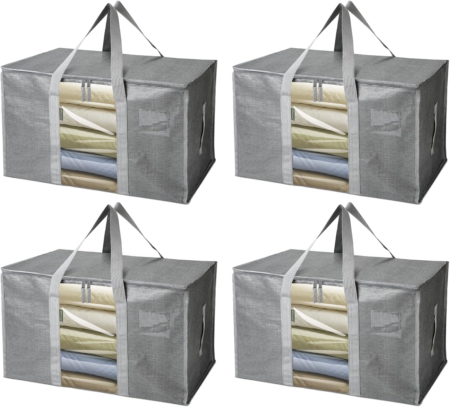 BALEINE 4-Pack Oversized Moving Bags with Reinforced Handles, Heavy-Duty Storage Tote for Clothes, Moving Supplies (Grey with Window, 4 Pack)