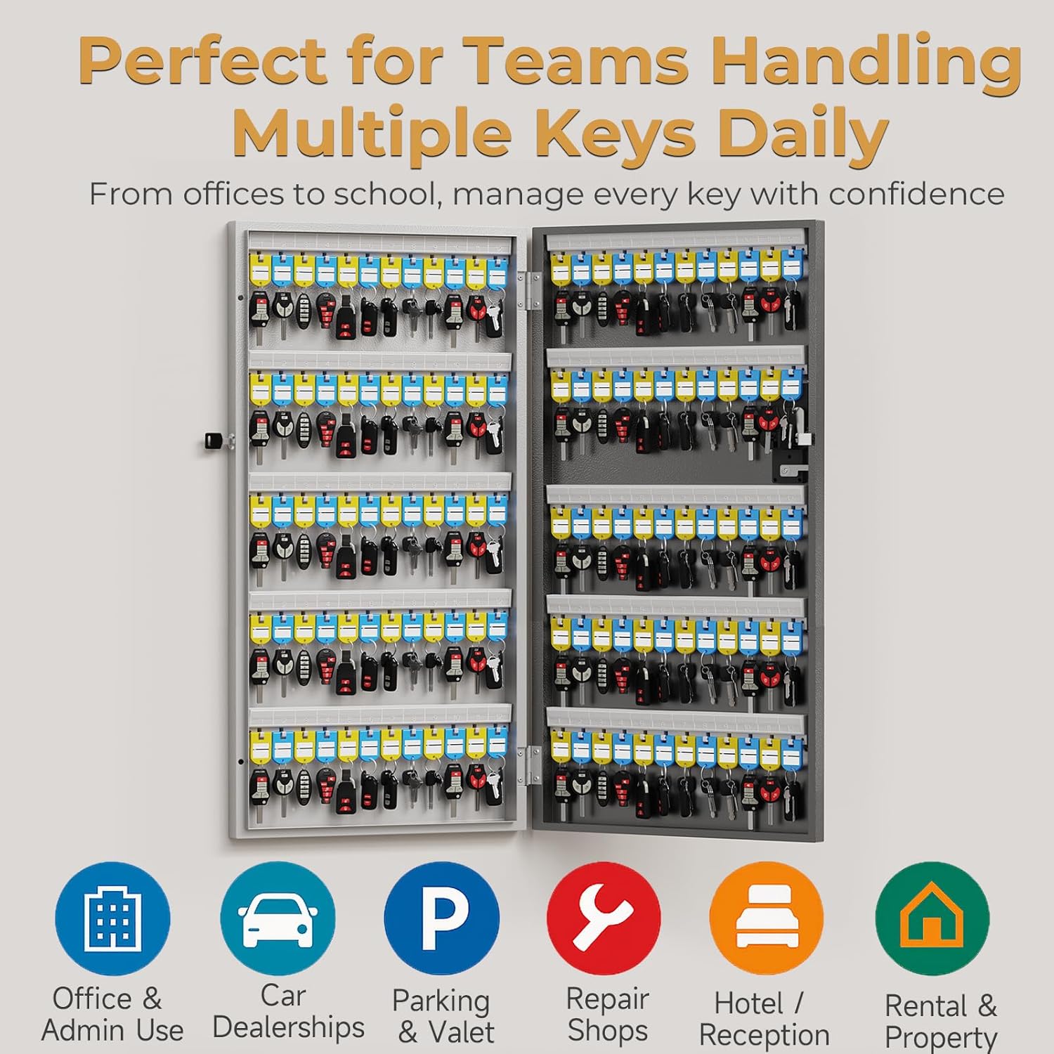 - 【MULTIPURPOSE KEY STORAGE BOX】Ideal for home, office, apartment complex, boat dealers, rental car agencies, car lots, body shops and more.