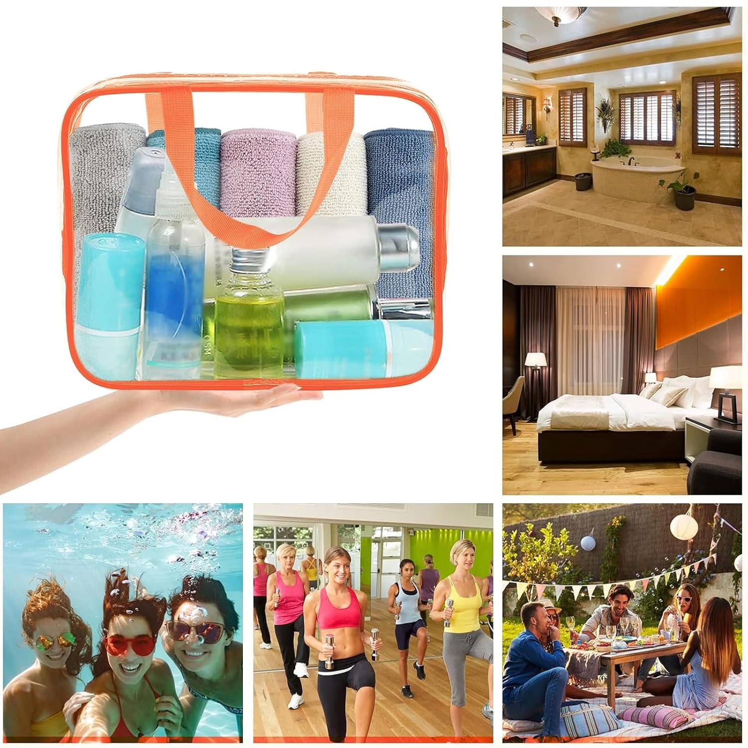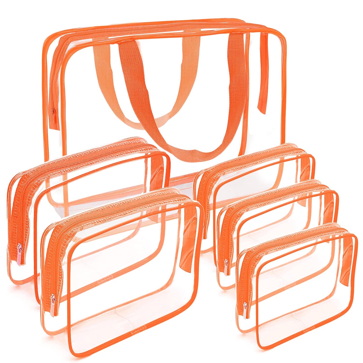 APREUTY Clear Makeup Bags, TSA Approved 6 Pcs Cosmetic Makeup Bags Set Clear PVC with Zipper Handle Portable Travel Luggage Pouch Airport Airline Vacation Organization (Orange)