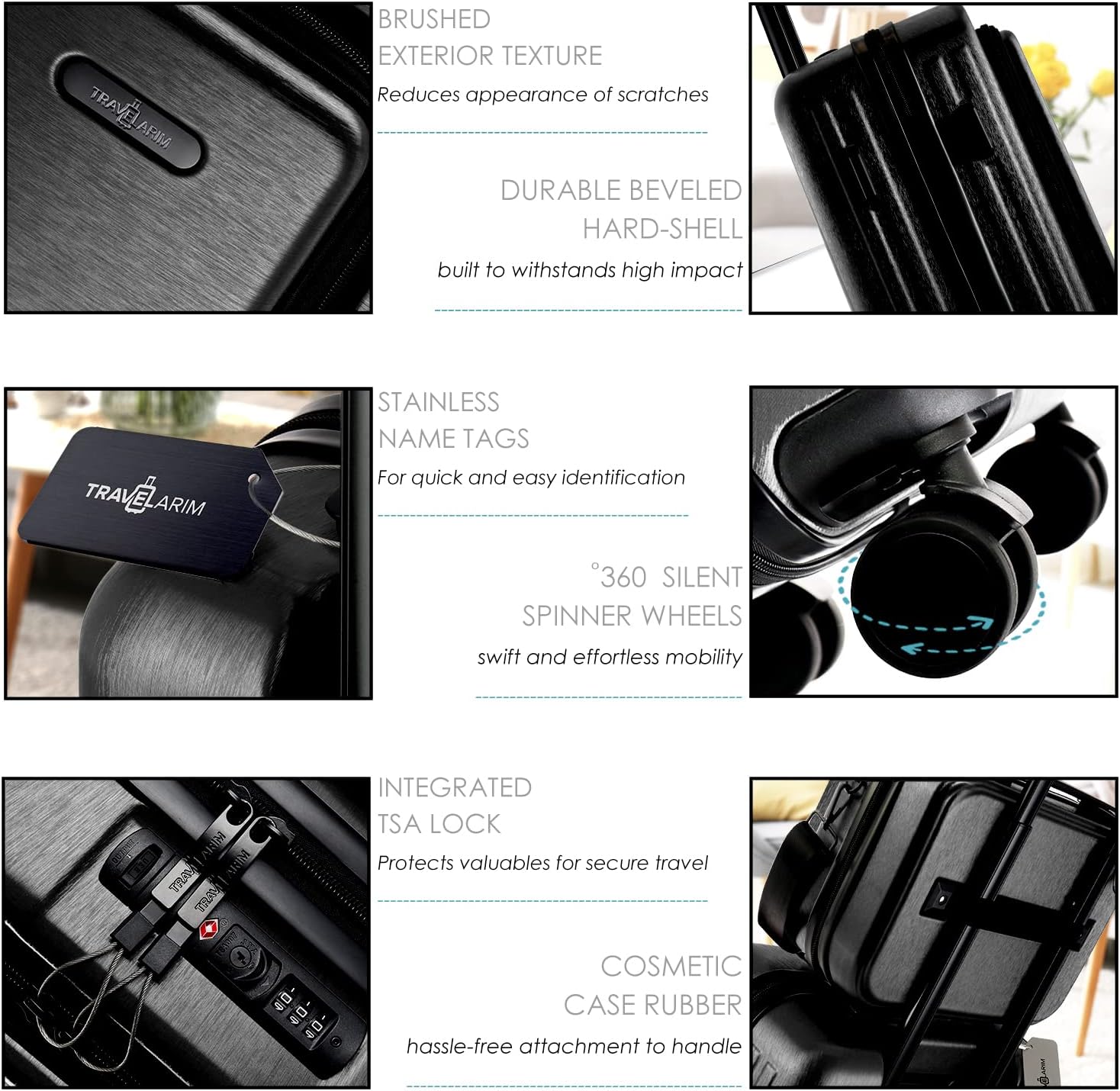 - Hard Shell Carry On Luggage Set: The impact-resistant design of our luggage carry on suitcase and cosmetic case include beveled sides to deflect hard knocks and a brushed finish that reduces scratches. Enjoy hassle-free travel with carry-on luggage that works for you.