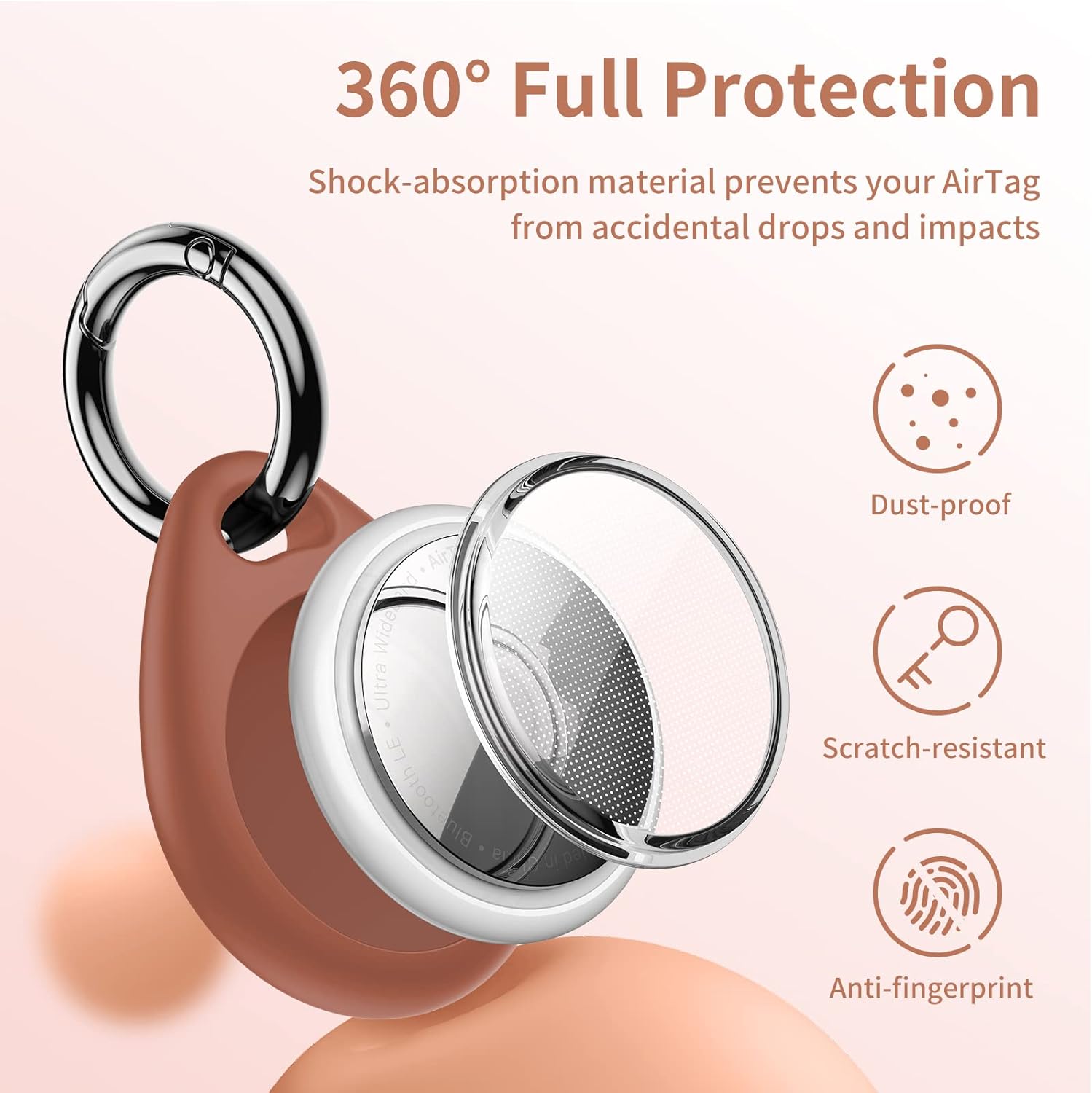 - All Around Protection, Sturdy TPU Shell: The case for apple air tags-4 pack is made of a high-performance TPU shell and the embedded TPU transparent front cover, can protect your AirTag from 360° scratches, survive a drop from a height of 10 feet(3M)
