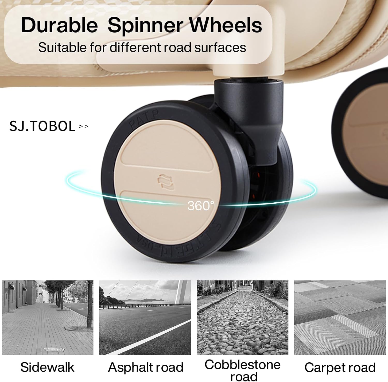 - 【High Quality Accessories】SJ . TOBOL durable spinner wheels,It is composed of precision shaft center and thickened TPE wheel skin, which is very wear-resistant,quieter and has strong bearing capacity, It is applicable to different roads such as cobblestone road and carpet road. Smooth and durable 5-strand reinforced explosion-proof zipper reverse coil prevents burst zipper. Travel-approved combination lock is safe and convenient. Ergonomics telescopic handle with multi-steps adjustment.