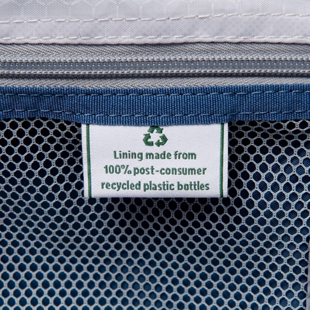 - DURABLE & ECO-FRIENDLY: Made from stain-resistant polyester with a water-repellent DuraGuard coating and ergonomic, high-strength zippers for lasting durability. The interior lining is crafted from recycled plastics for a sustainable touch.