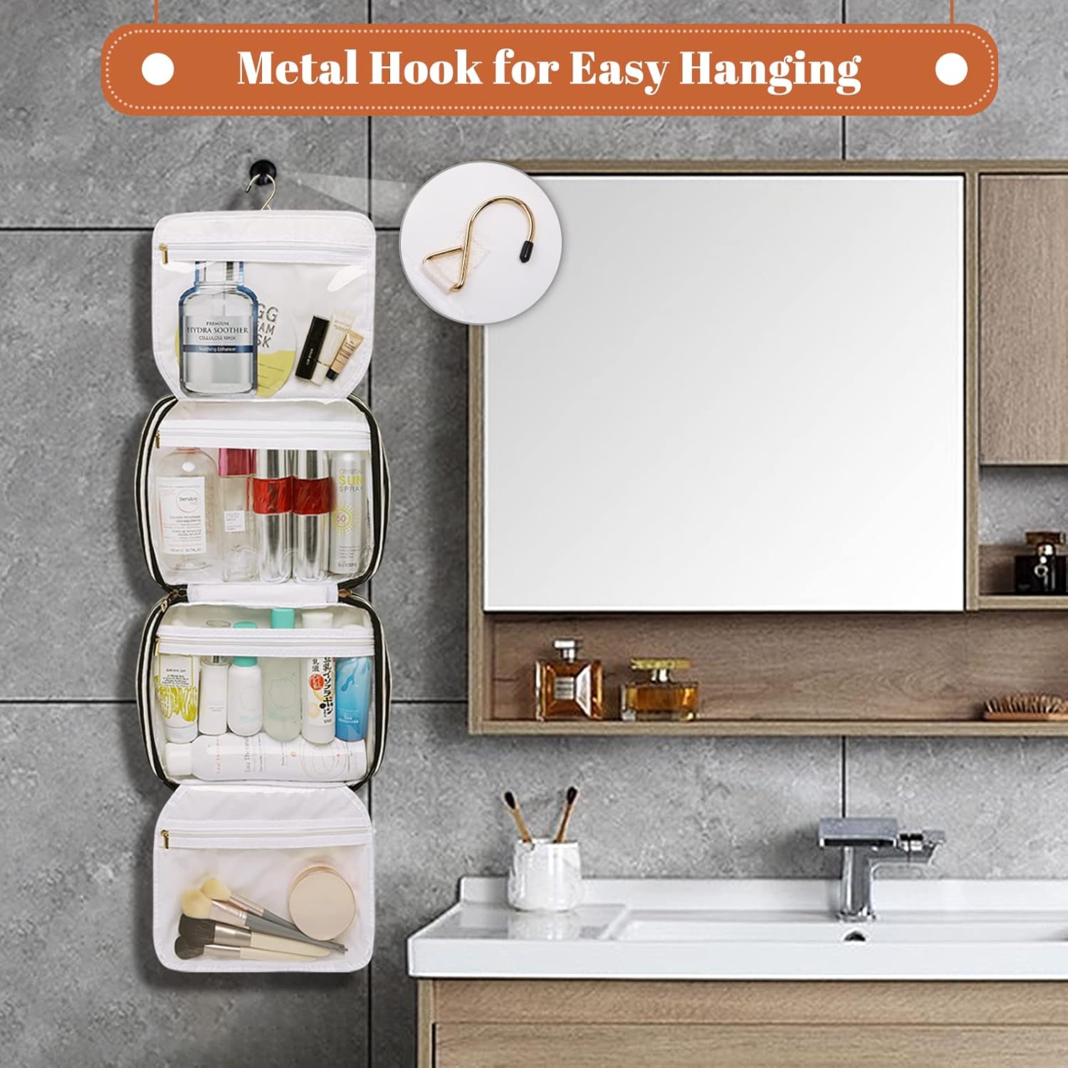 Hanging Travel Toiletry Bag,Large Capacity Cosmetic Travel Toiletry Organizer for Women with 4 Compartments & 1 Sturdy Hook,Perfect for Travel/Daily Use/Christmas