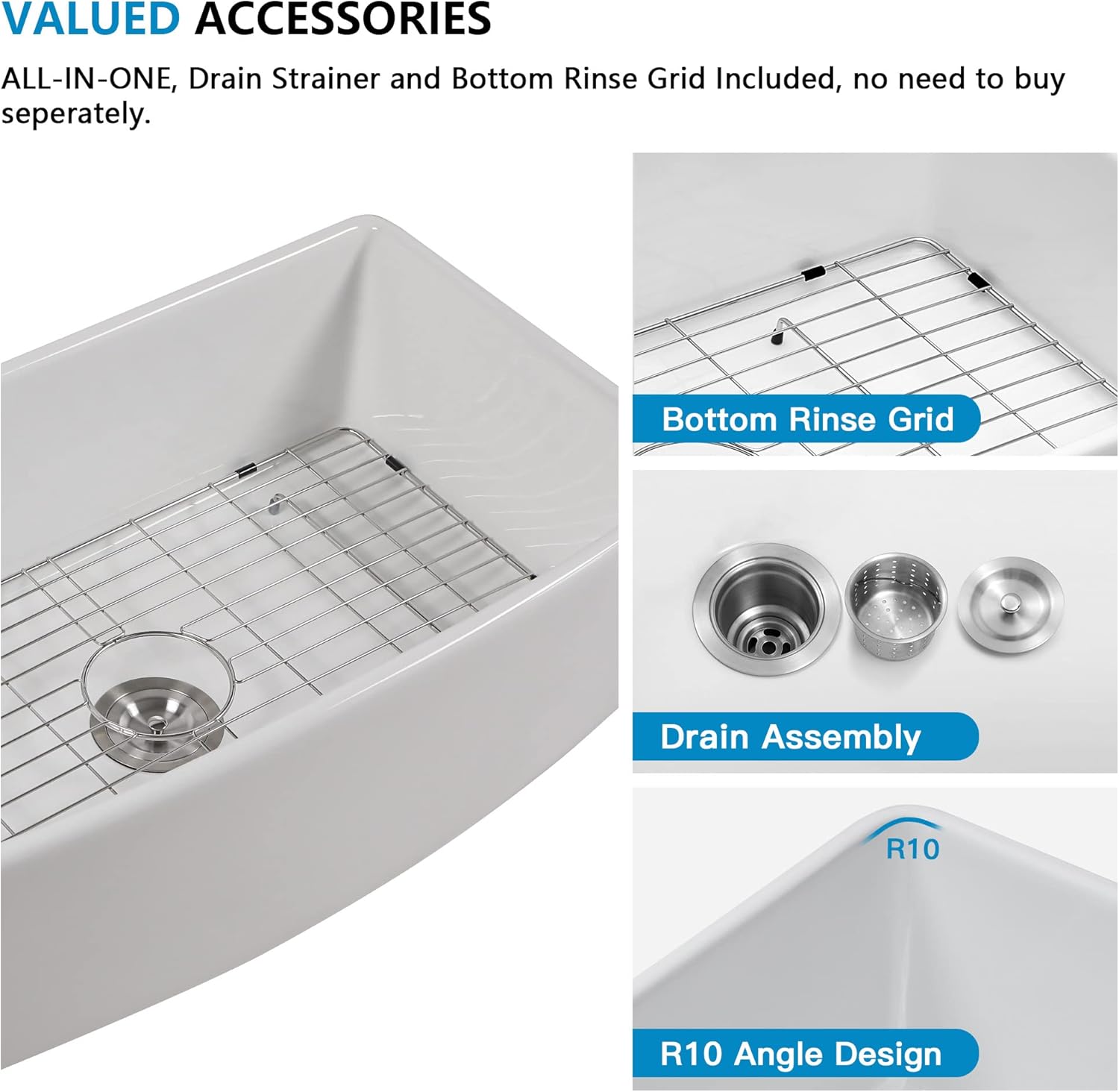 - Fulorni Service - The white farmhouse sink is packaged in a custom impact resistant foam box for maximum protection during transit, ensures that you receive it in undamaged condition, pls order with confidence. If any concerns or questions about the 33 fireclay farm sink, please get in touch with us, our customer care team is always ready to help you.