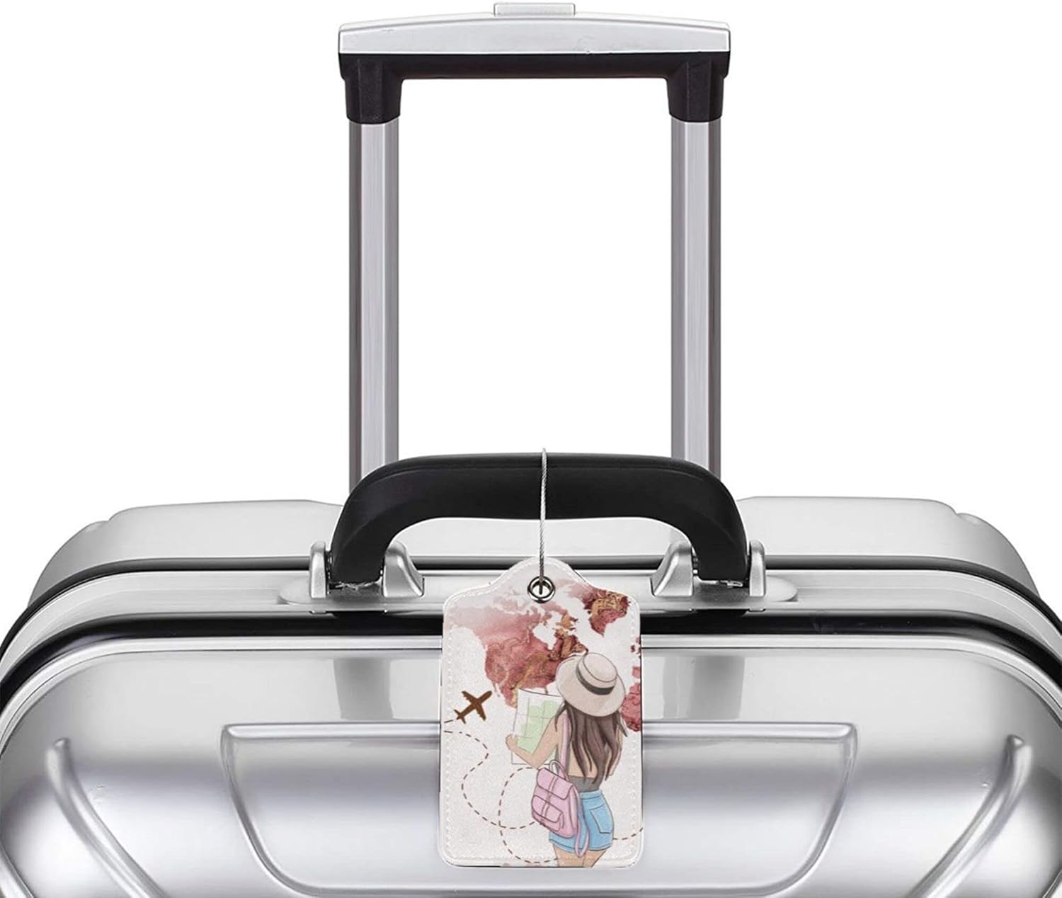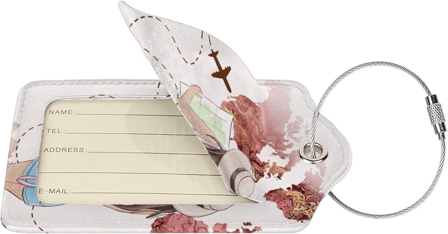 2 Pack Luggage Tags for Suitcase,Travel Girl PU Leather Travel Luggage Tag with Privacy Flap, Name ID Label and Metal Loop for Women Men Suitcase Baggage Bag Backpack