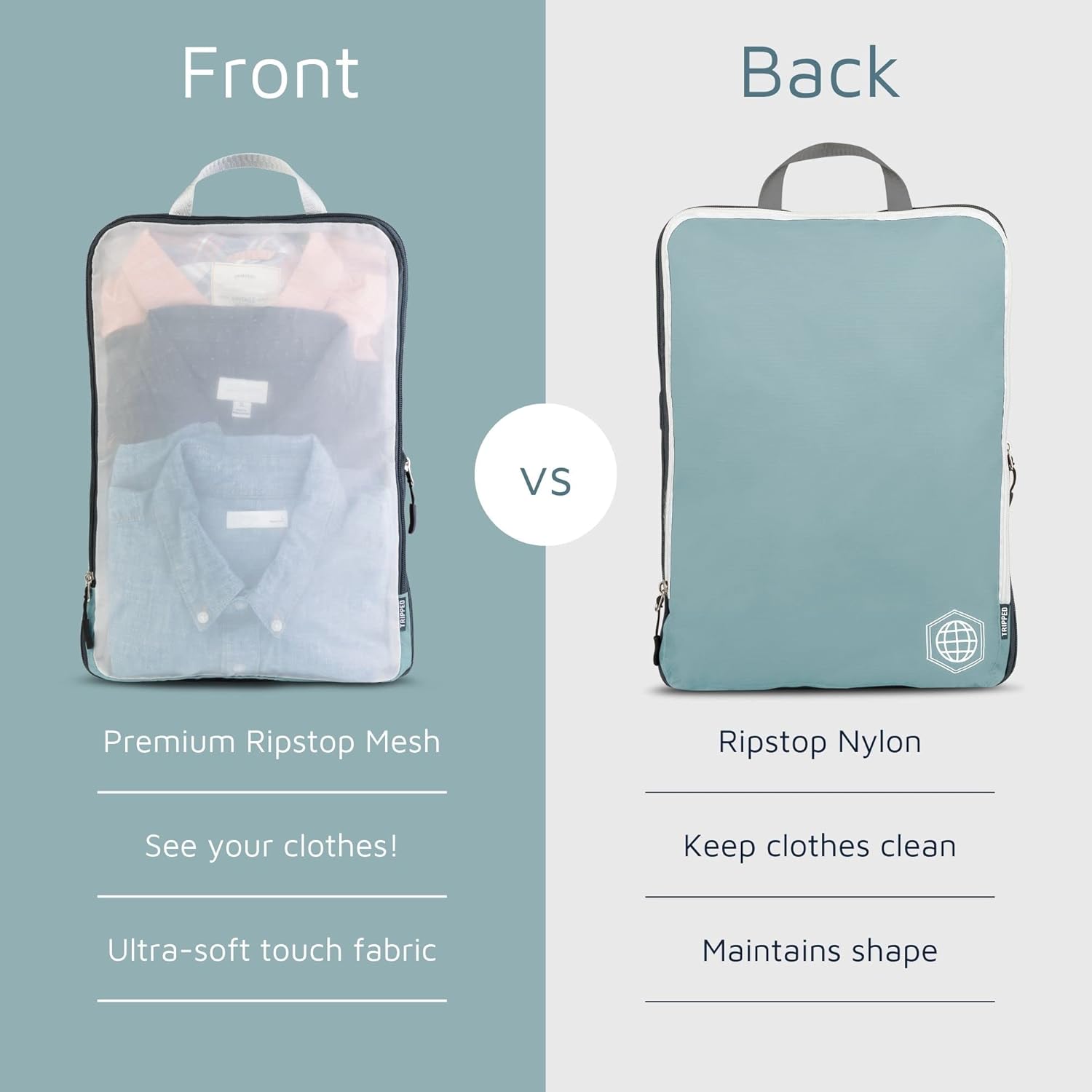 Large Packing Cube Set with See Through Mesh- Compression Packing Cubes Travel Organizers by TRIPPED Travel Gear (Dusty Teal)