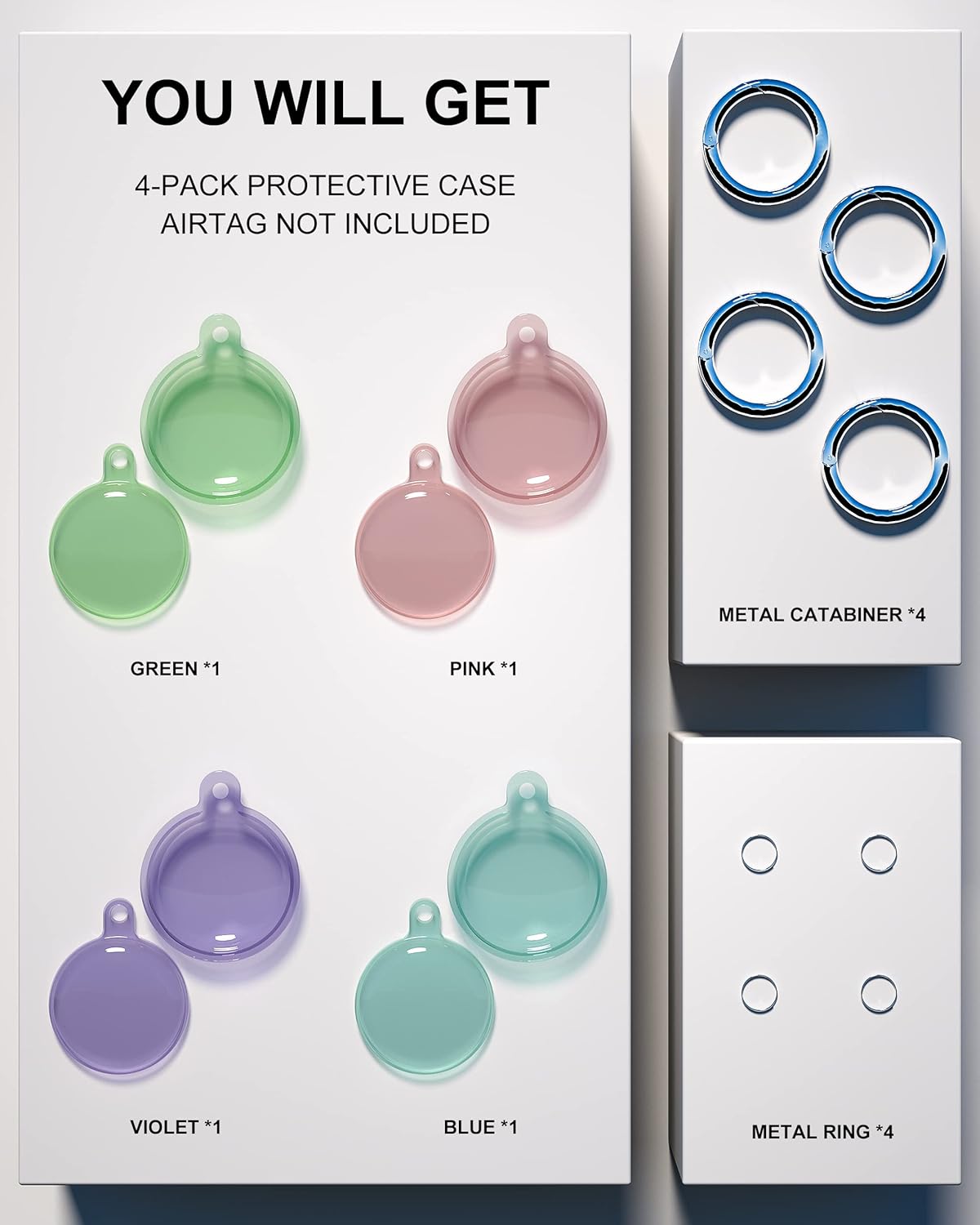 - 【Complete Package】Includes 4 x Colorful AirTag Cases + 4 x Premium Keychains + 24/7 Customer Support. Backed by our 1-year replacement warranty for worry-free use.