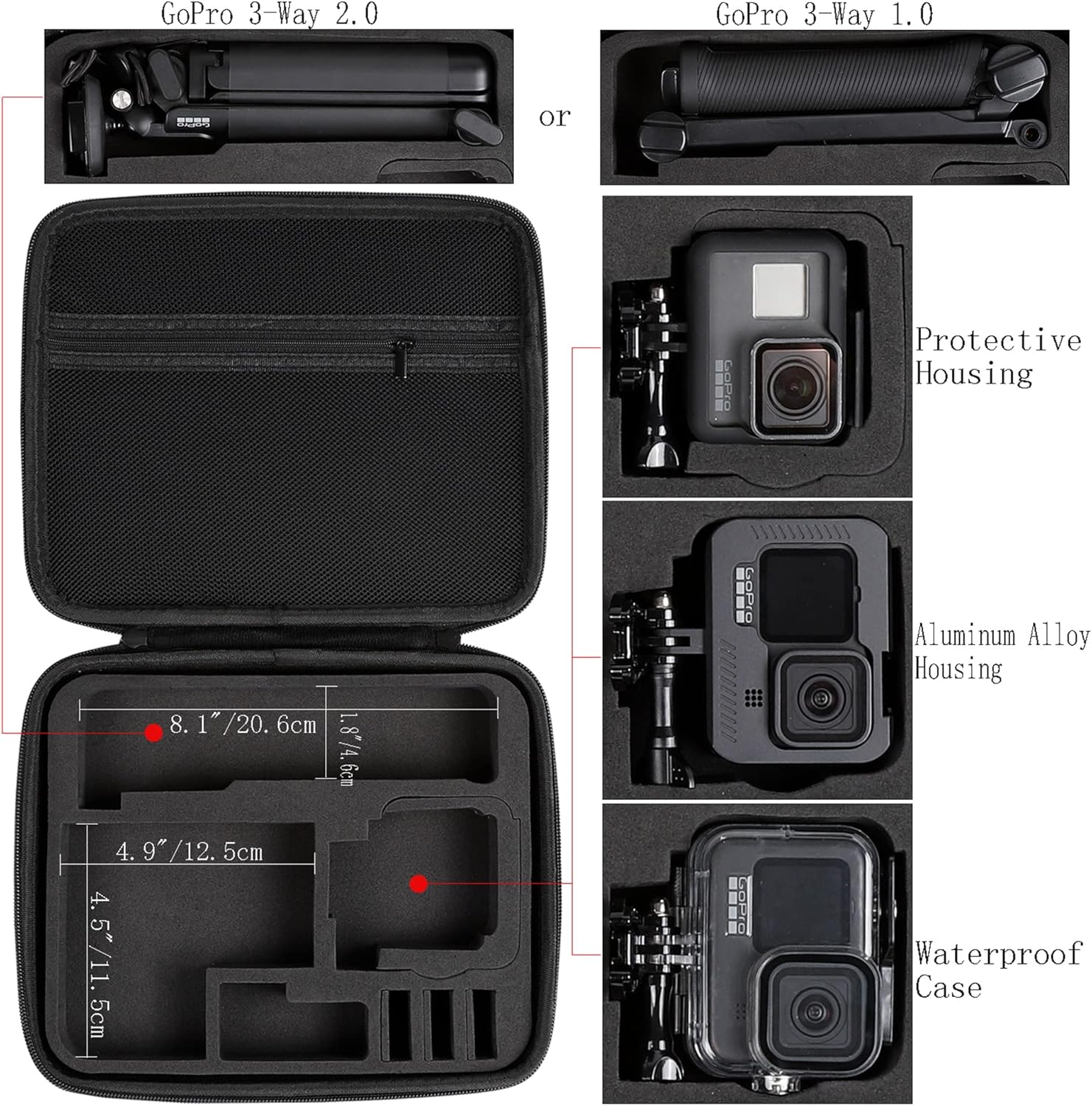 - Perfectly Compatible With GoPro Cameras And Accessories: The PellKing case is perfect for storing GoPro cameras and accessories such as the GoPro 3-Way Grip/GoPro 3-Way 2.0 Selfie Stick, 3*Battery, Battery Charger, Waterproof Case, Protective Body, Chest Strap, Head Strap, Backpack Clip,and Other Mount Acessories.