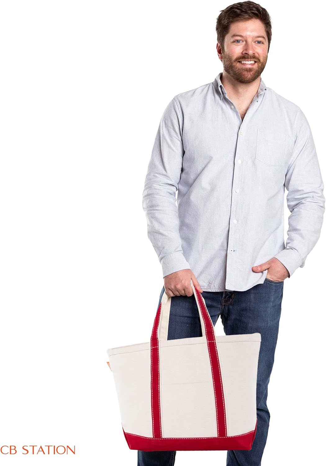CB STATION Medium Classic Canvas Tote Bag for Women, Top Zipper Closure, Outer Pocket, Daily Essentials, Groceries, Traveling