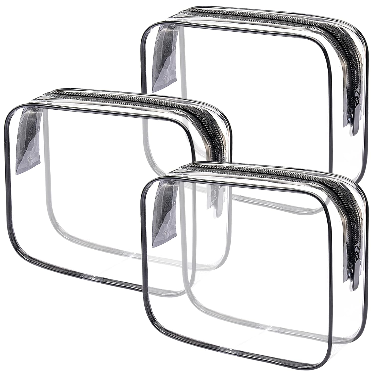 Lermende 2pcs Clear Toiletry Bag TSA Approved Travel Bag,Carry On for Travel,Airport Airline Accessories Compliant Bag,Quart Sized Makeup Cosmetic bag Women Men (Transparent Black, 3 Pack)