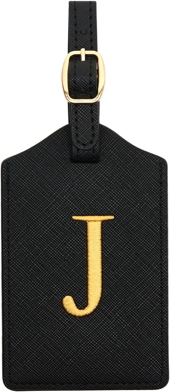 - EMBROIDERED INITIAL LUGGAGE TAG - Each black tag comes with embroidered letter in color gold. The bright color and size will help your suitcases be more easily recognizable at baggage claim.