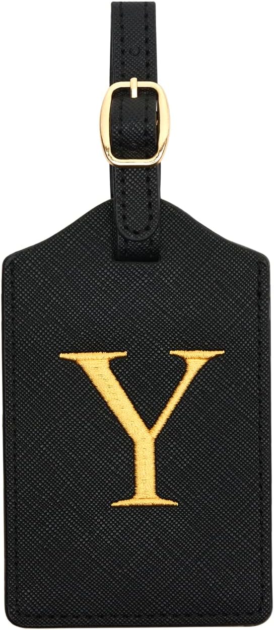 - EMBROIDERED INITIAL LUGGAGE TAG - Each black tag comes with embroidered letter in color gold. The bright color and size will help your suitcases be more easily recognizable at baggage claim.