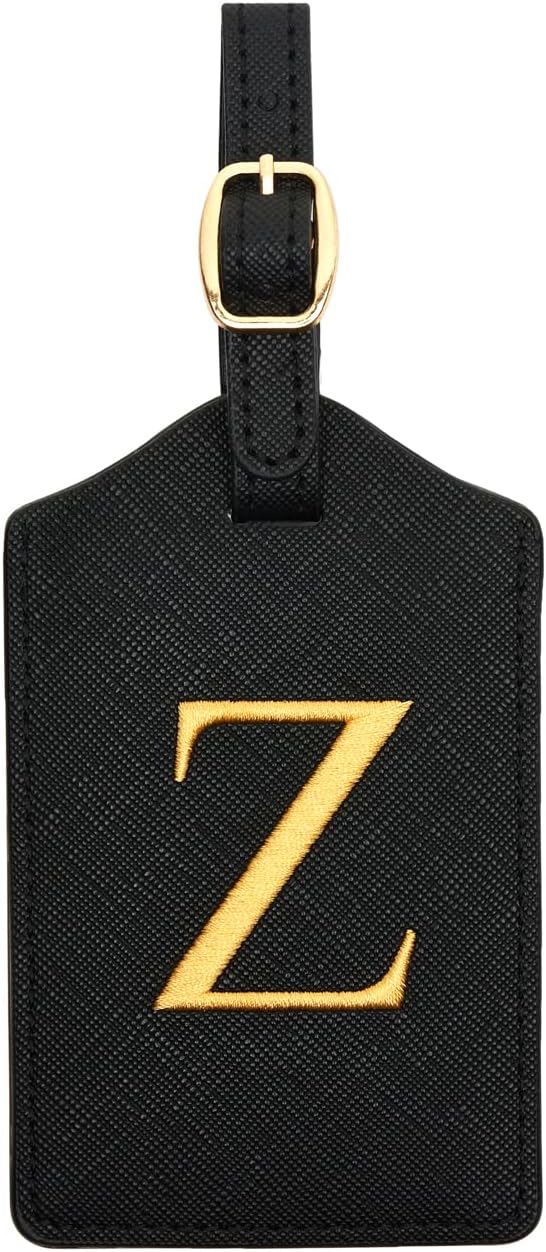 - EMBROIDERED INITIAL LUGGAGE TAG - Each black tag comes with embroidered letter in color gold. The bright color and size will help your suitcases be more easily recognizable at baggage claim.