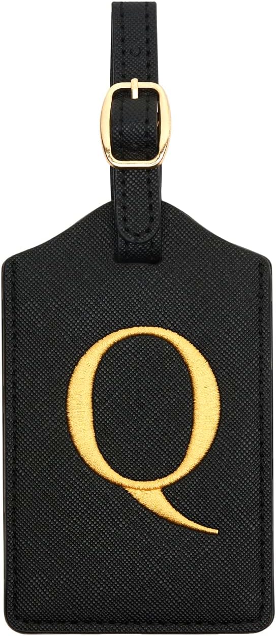 - EMBROIDERED INITIAL LUGGAGE TAG - Each black tag comes with embroidered letter in color gold. The bright color and size will help your suitcases be more easily recognizable at baggage claim.