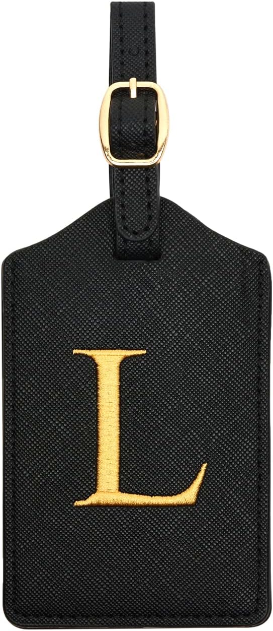 - EMBROIDERED INITIAL LUGGAGE TAG - Each black tag comes with embroidered letter in color gold. The bright color and size will help your suitcases be more easily recognizable at baggage claim.