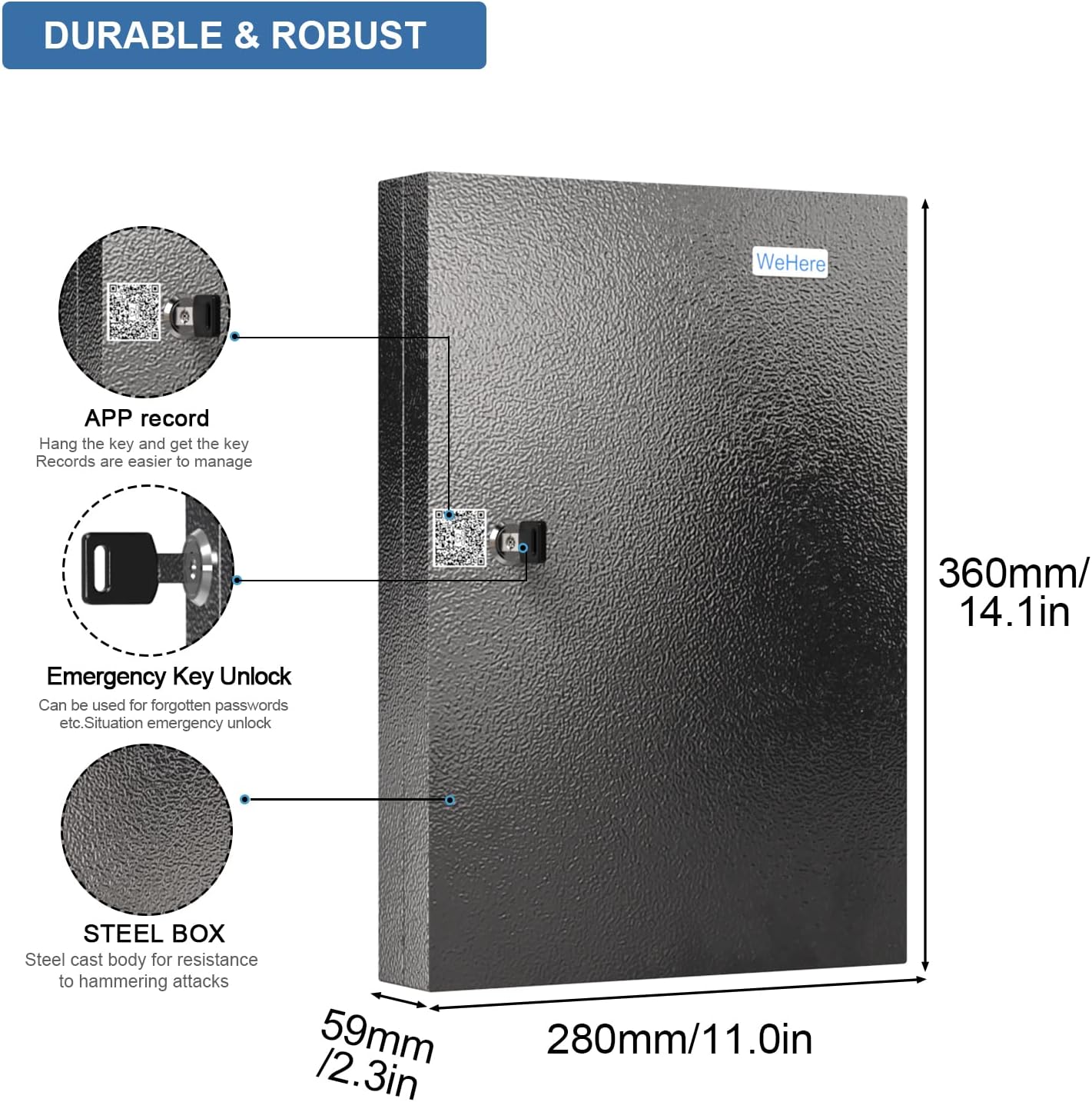 - 【KEY STORAGE BOX】 MADE OF heavy gauge STEEL with powder coated and scratch resistant BLACK finish, key box service life can be up to 5 years. Key Hooks with spacious 32 positions, Quality Key Locker along with Wall Mountable and Lockable designs can securely store your keys and keep them well organized.