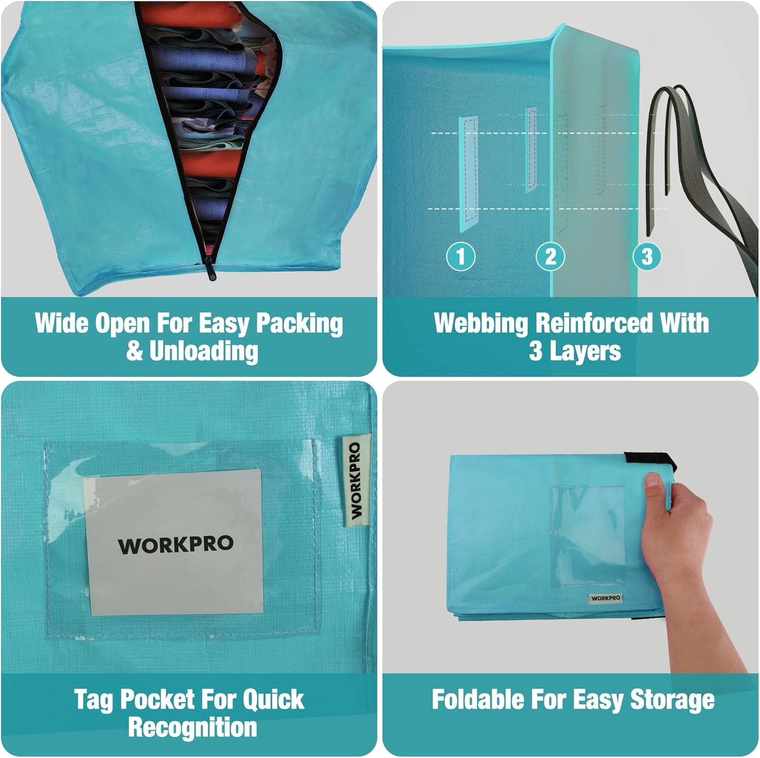 - Versatile Use: WORKPRO moving bags are not just great for moving; they can also be used for dust-resistant storage, such as keeping seasonal clothing or sports equipment, or for travel, such as packing camping gear or road trip essentials