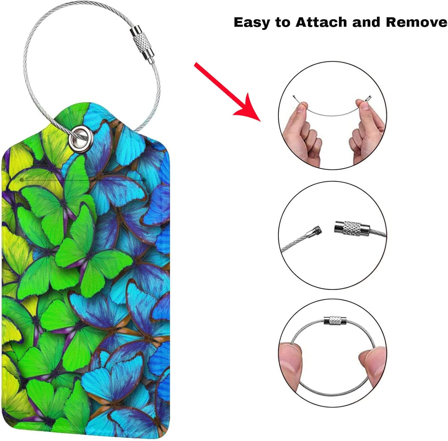 2Pcs Green Blue Butterfly Luggage Tags for Suitcases for Women Girls, Pretty Leather Suitcases Tag with Stainless Steel Loop Privacy Cover ID Label Travel Bag Tags Luggage Identifiers for Kids Adults
