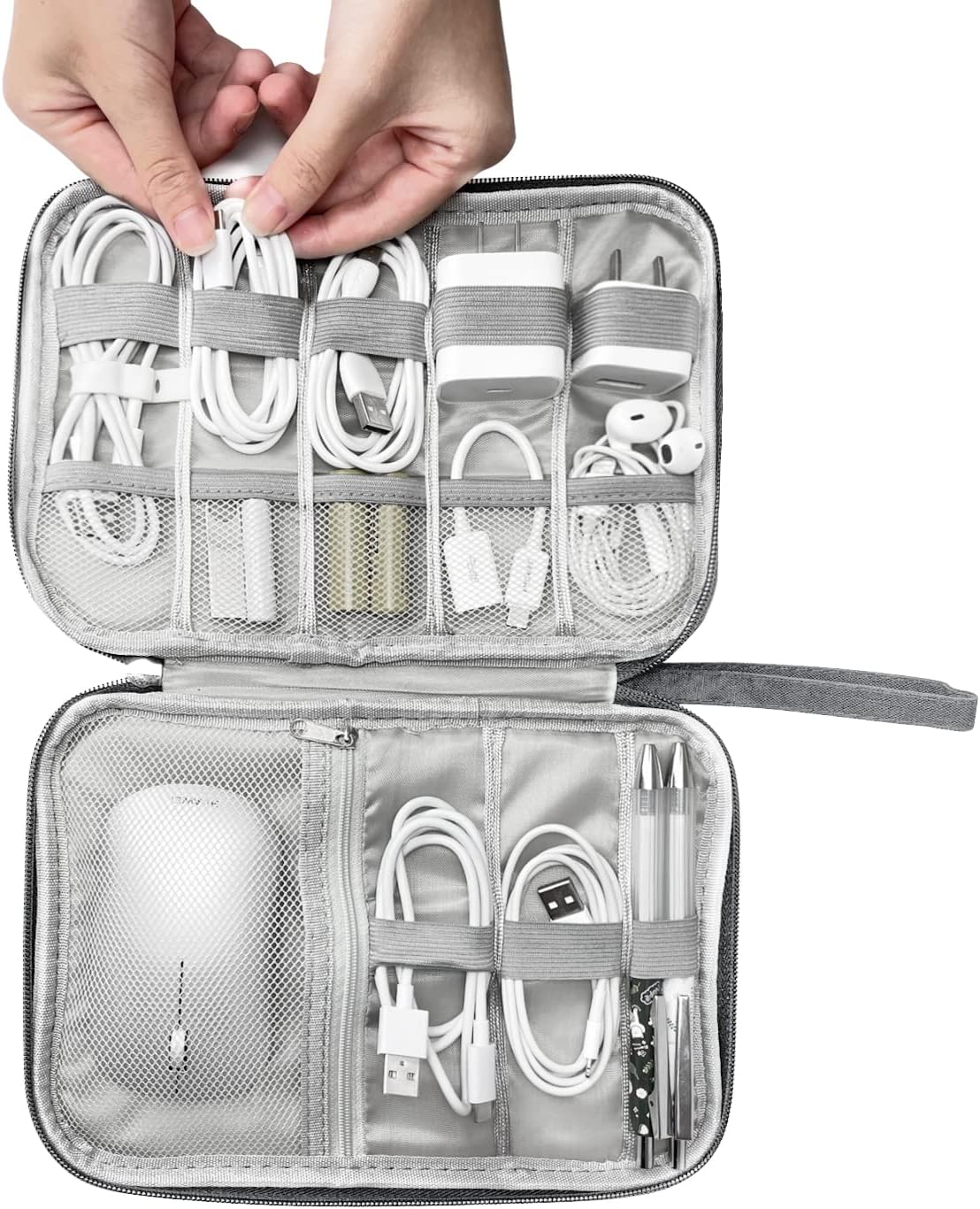 - Small Portable:Size: 9.5 x 6.7 inches ( LxW ) ,Weight: 0.2 lb. The lightweight portable cord organizer is ideal for travelling or daily use to easily carry and fit into the backpack or handbag.A great companion with travel electronics organizer