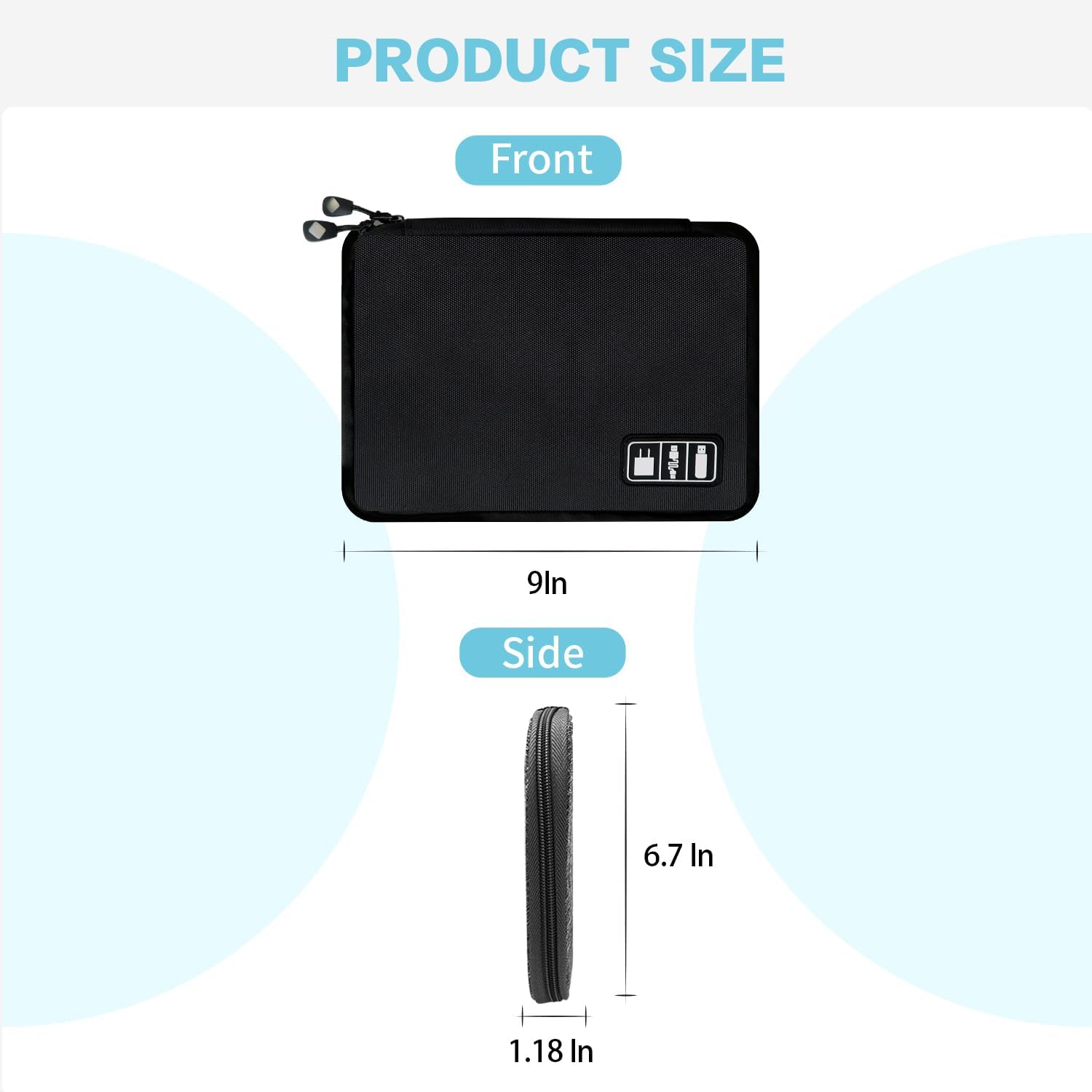- Small Portable:Size: 9 x 6.7 inches ( LxW ) ,Weight: 0.2 lb. The lightweight portable cord organizer is ideal for travelling or daily use to easily carry and fit into the backpack or handbag.A great companion with travel electronics organizer