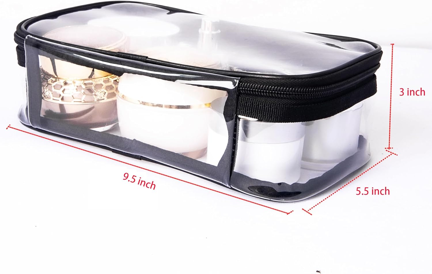 Portable Zippered Transparent Vinyl Travel Cosmetic Bag Clear PVC Makeup Kits Organizer Utility Pouch See Through Plastic TSA Approved Toiletry Carry Pouch