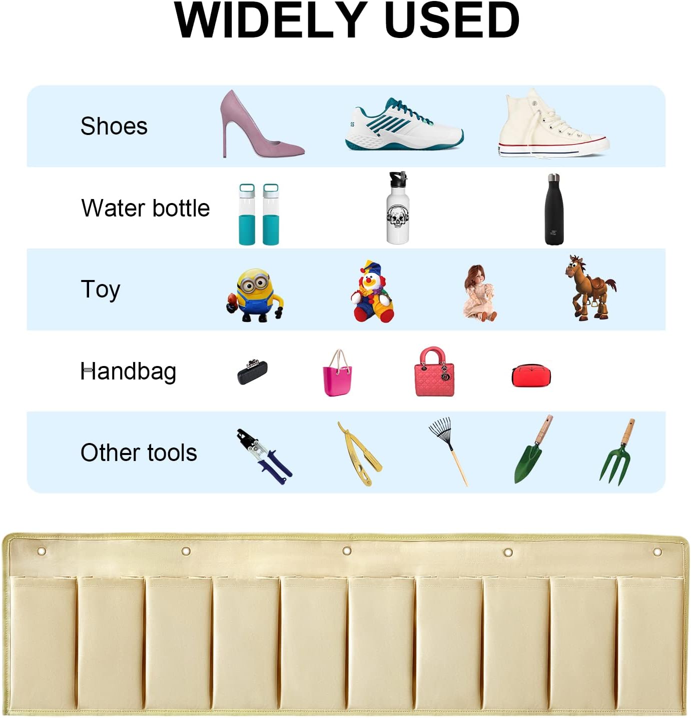 RV Shoe Pockets 10 Pockets Heavy Hanging Bedside Storage Organizer with Sturdy Hooks Storage Pockets Hangs on bed for Shoes Toys and Tool Accessories