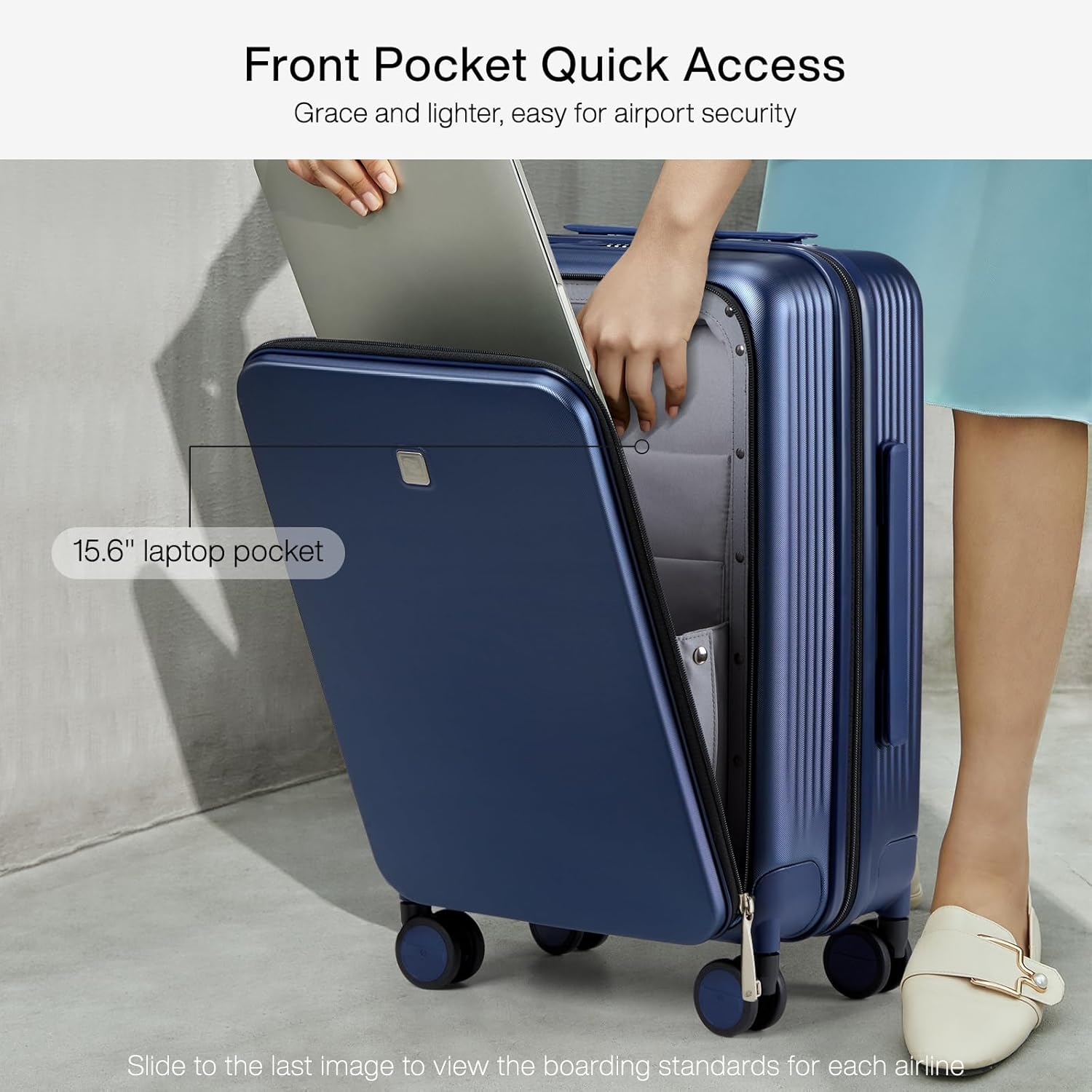 Hanke Grace Carry On Luggage with Wheels Airline Approved Hard Shell Suitcases with Front Pocket,Top Opening Luggage with TSA Lock for Short Business Travel,Dark Blue