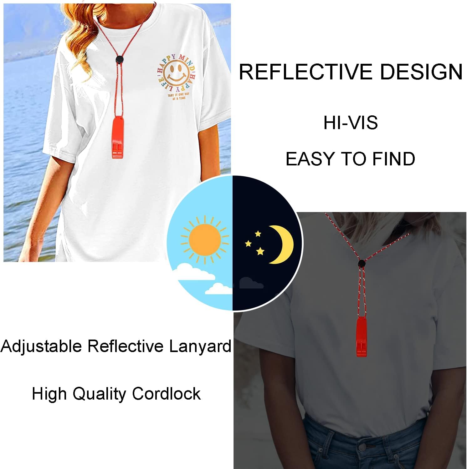 - ADJUSTABLE LANYARD AND SLIDE BUCKLE: Safety whistles with reflective lanyard, even in the dark is easy to find, long lanyard with a slide buckle to adjust the length of the rope, can be easily worn around the neck, you can also clip the whistles in your pocket or belt in case of emergency can be blown quickly.