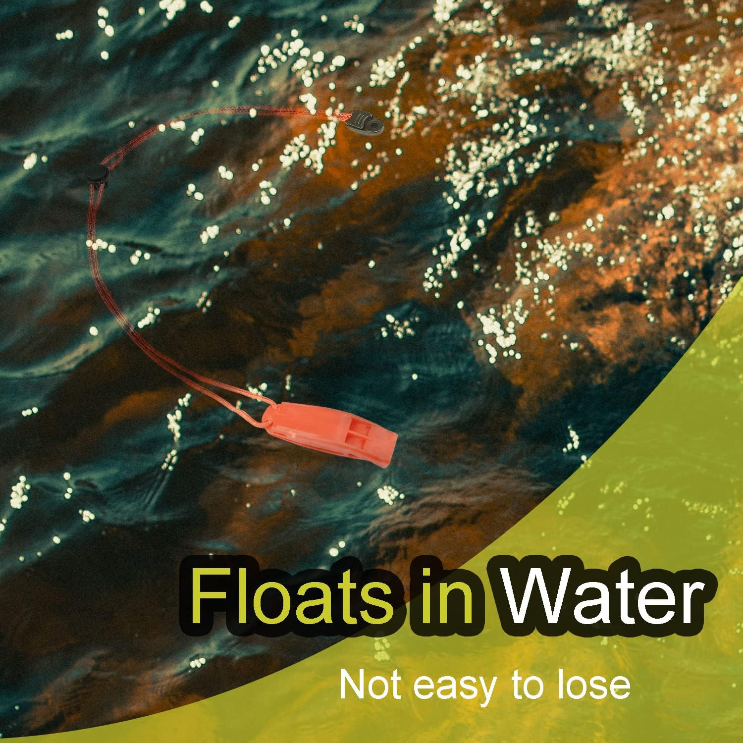 - MULTIPURPOSE: High quality whistle can emit high pitched sound, can be used as a safety whistle in outdoor activities, for kayaking, camping, hiking, swimming, boating, hunting and other outdoor sports, but also as a survival whistle, for self-defense, rescue, emergency survival, this safety whistle has dazzling colors, is ideal for your outdoor travel.