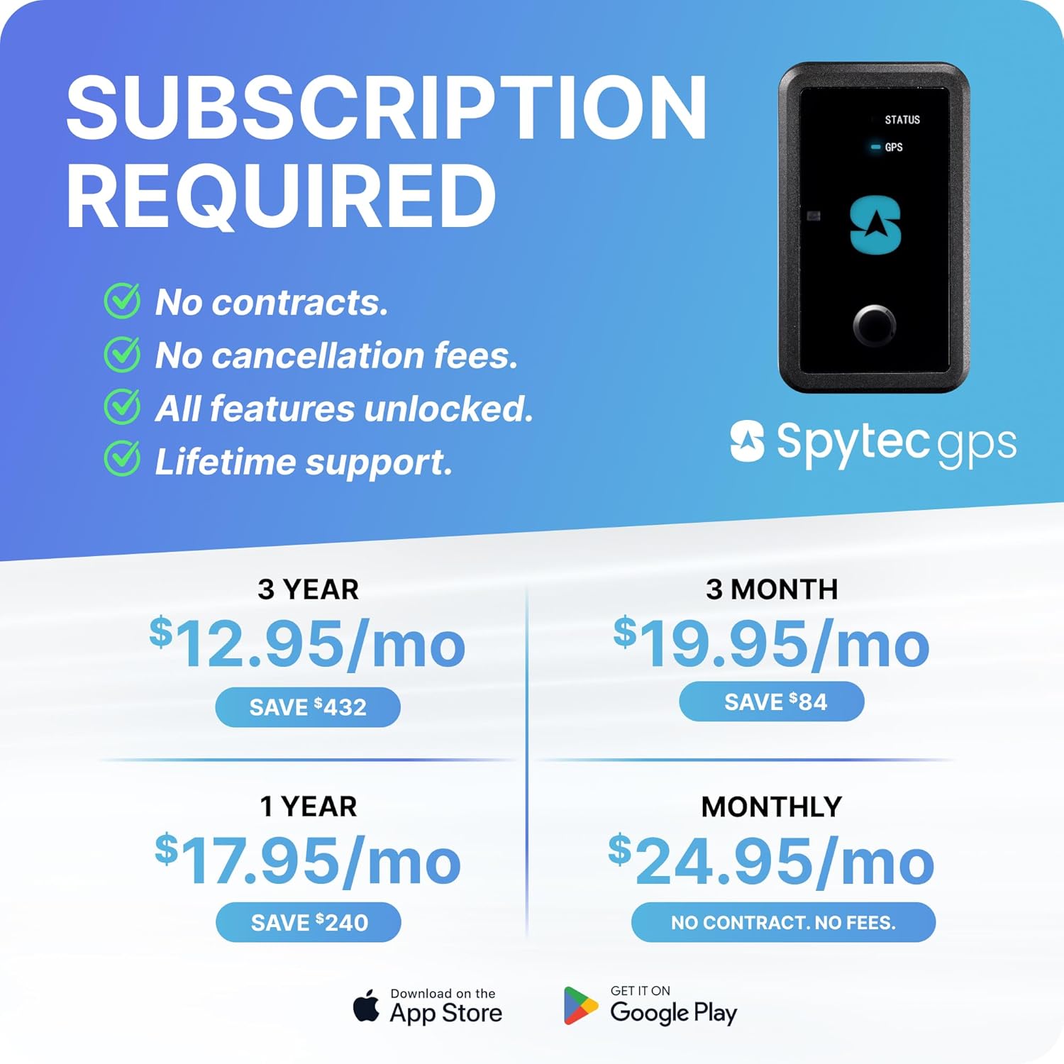 - LOW COST PLAN: Activate the device, choose your plan, and start tracking. Subscriptions start as low as $12.95/month(USD) annually or $24.95/month(USD), month-to-month. Get free 24/7 support on GPS trackers with an active annual subscription. Worldwide coverage - update Network Mode in app before leaving the country.