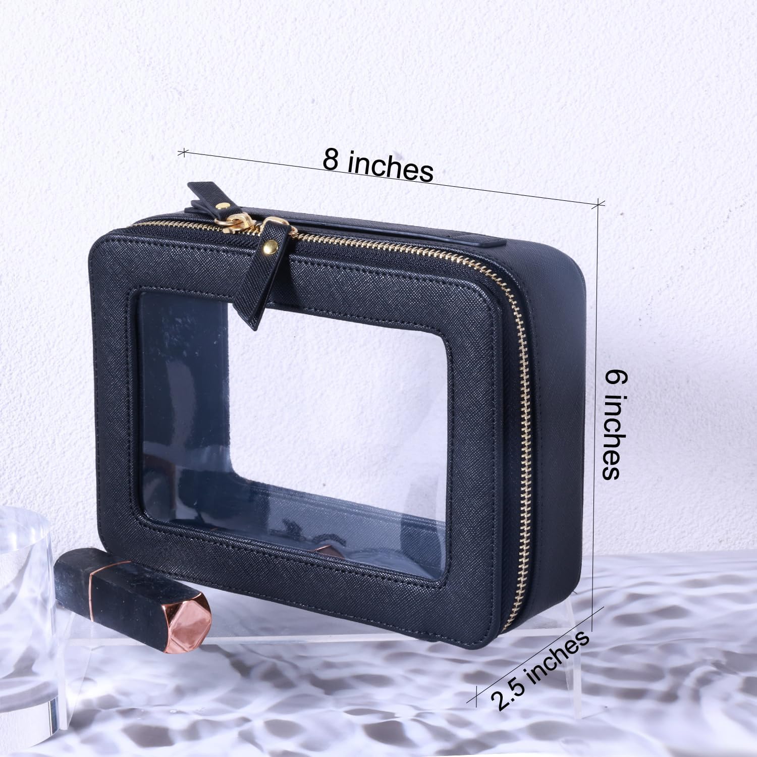 - Clear PVC window ,Transparent design can clear see you beauty cosmetics inside,2 round zipper easy to access,durable golden zipper.