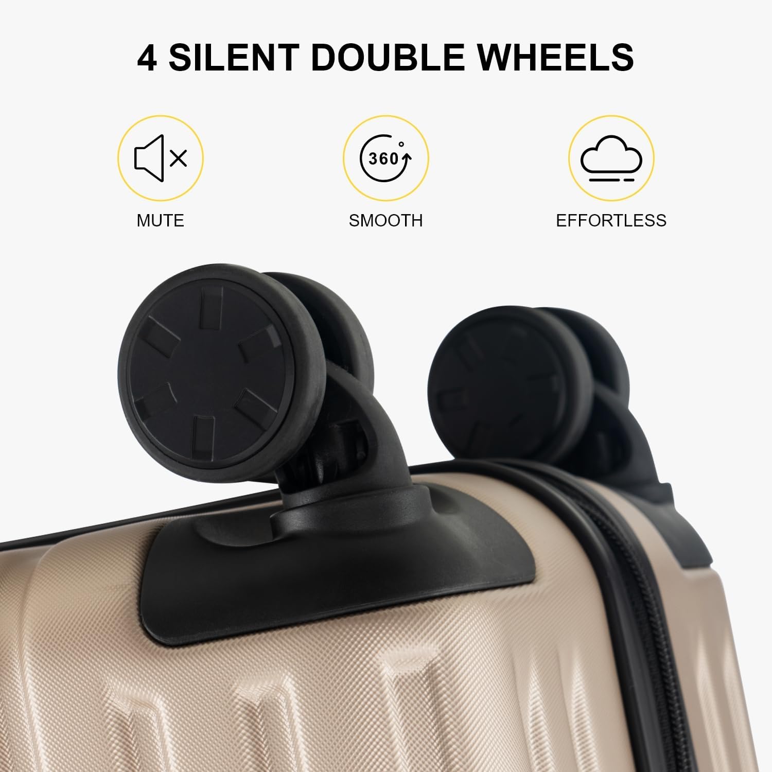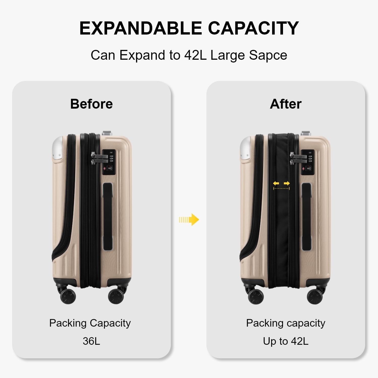 LEVEL8 Grace Carry on Luggage with Front Compartment, 20 Inch Expandable Hardside Suitcases with Wheels, Abs+Pc Harshell Spinner Luggages with Tsa Lock, Travel Bag for Women Men, Champagne
