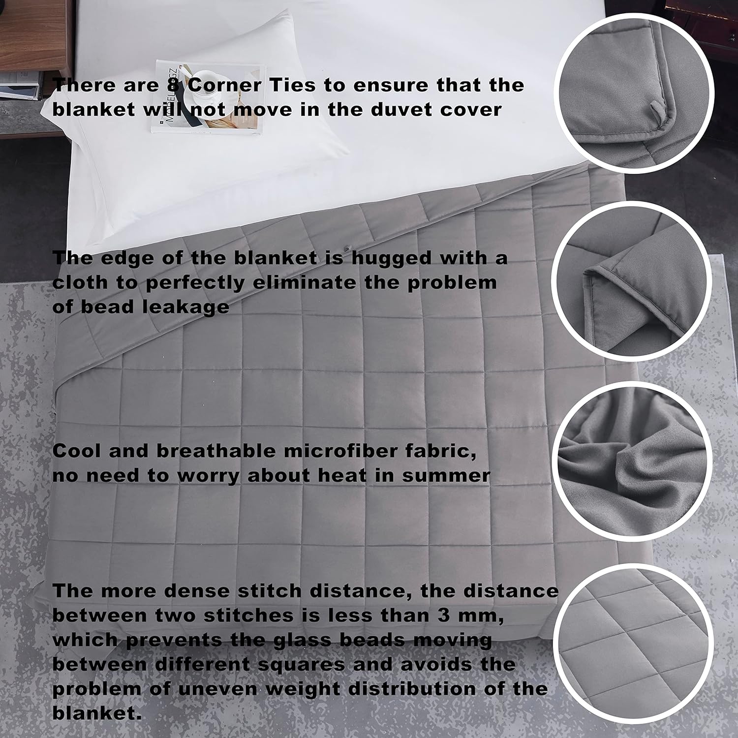 - 【PREMIUM MATERIAL】 - The weighted blanket is made of soft breathable microfiber material and filled with 0.8-1 mm non-toxic hypo-allergenic glass beads. This blanket could providing a cooling sensation in the summer & a breathable warmth in the winter.
