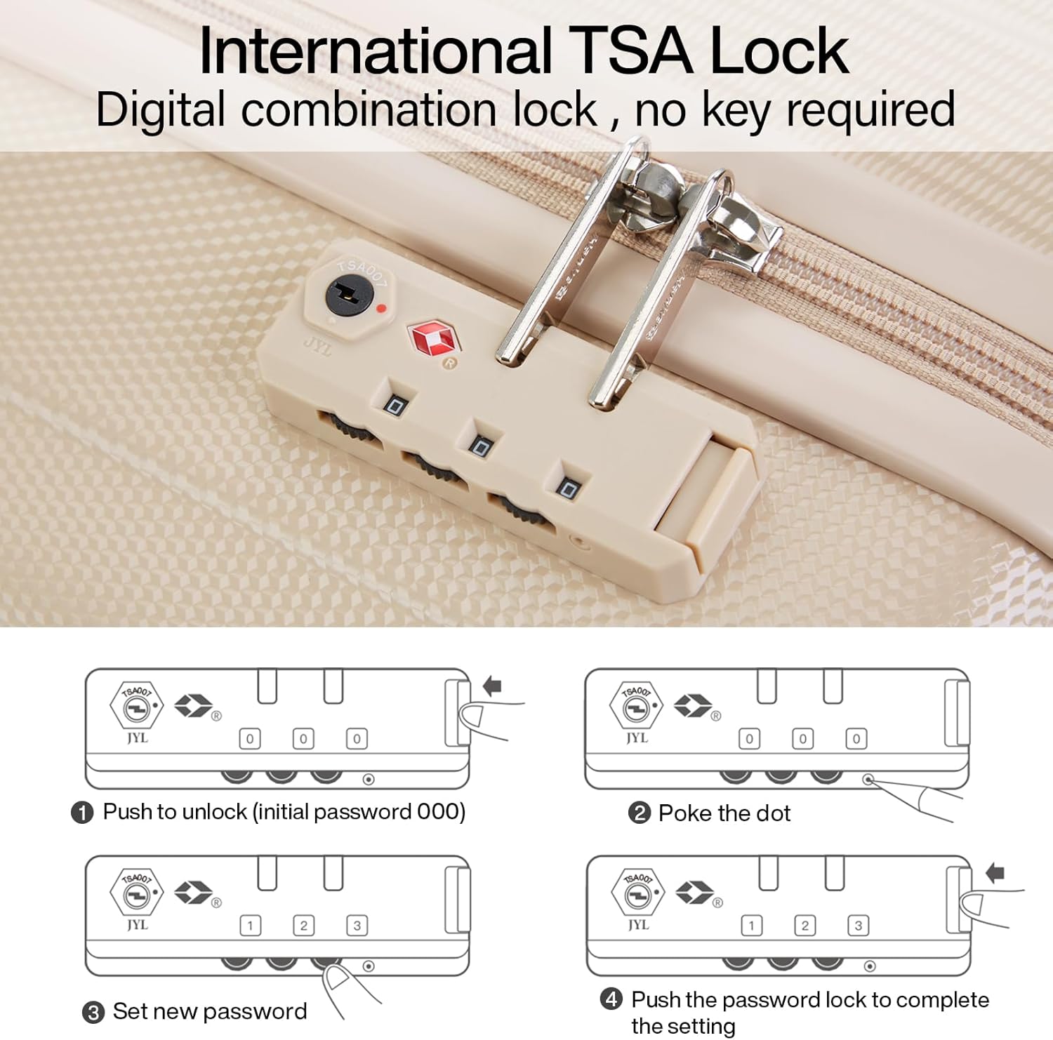 - 【Better Material】This is a suitcases with wheels hardshell,it get benifits from PC material and micro diamond texture on the surface, which is sturdy and scratch resistant,keeping travel suitcase beautiful trip after trip.The lining of this international carry on luggage is also very comfortable, and close fitting clothes can be stored with confidence.