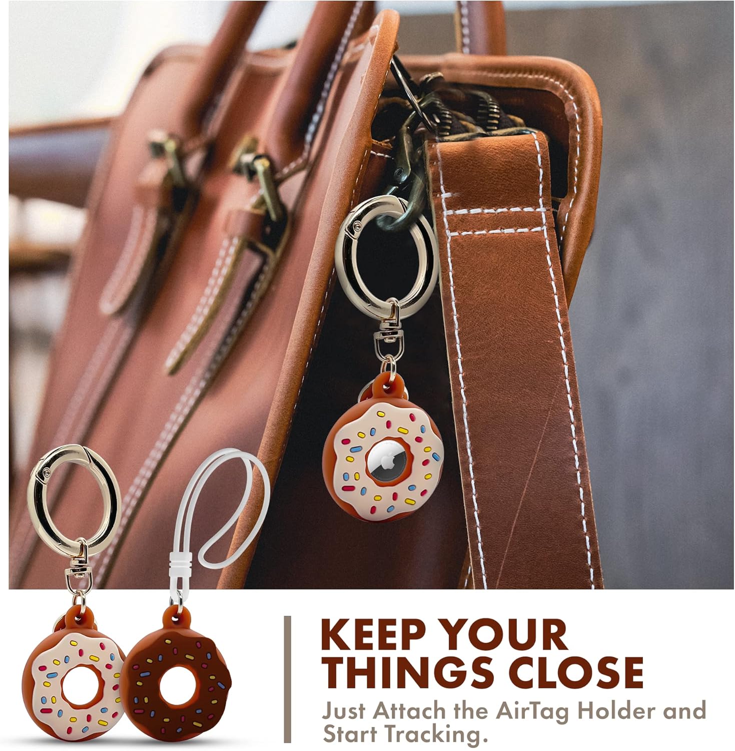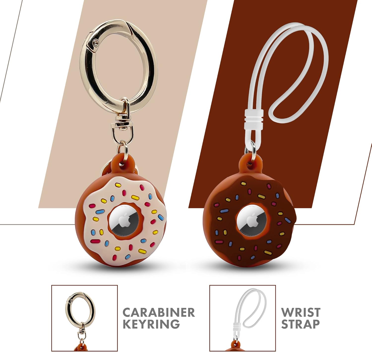 Apple AirTag 4 Pack Shockproof, Dustproof & Washable Cases, Silicon Holders with Accessories for Wallets, Luggage, Pet Collars, Key Finders (Donut (White & Brown))