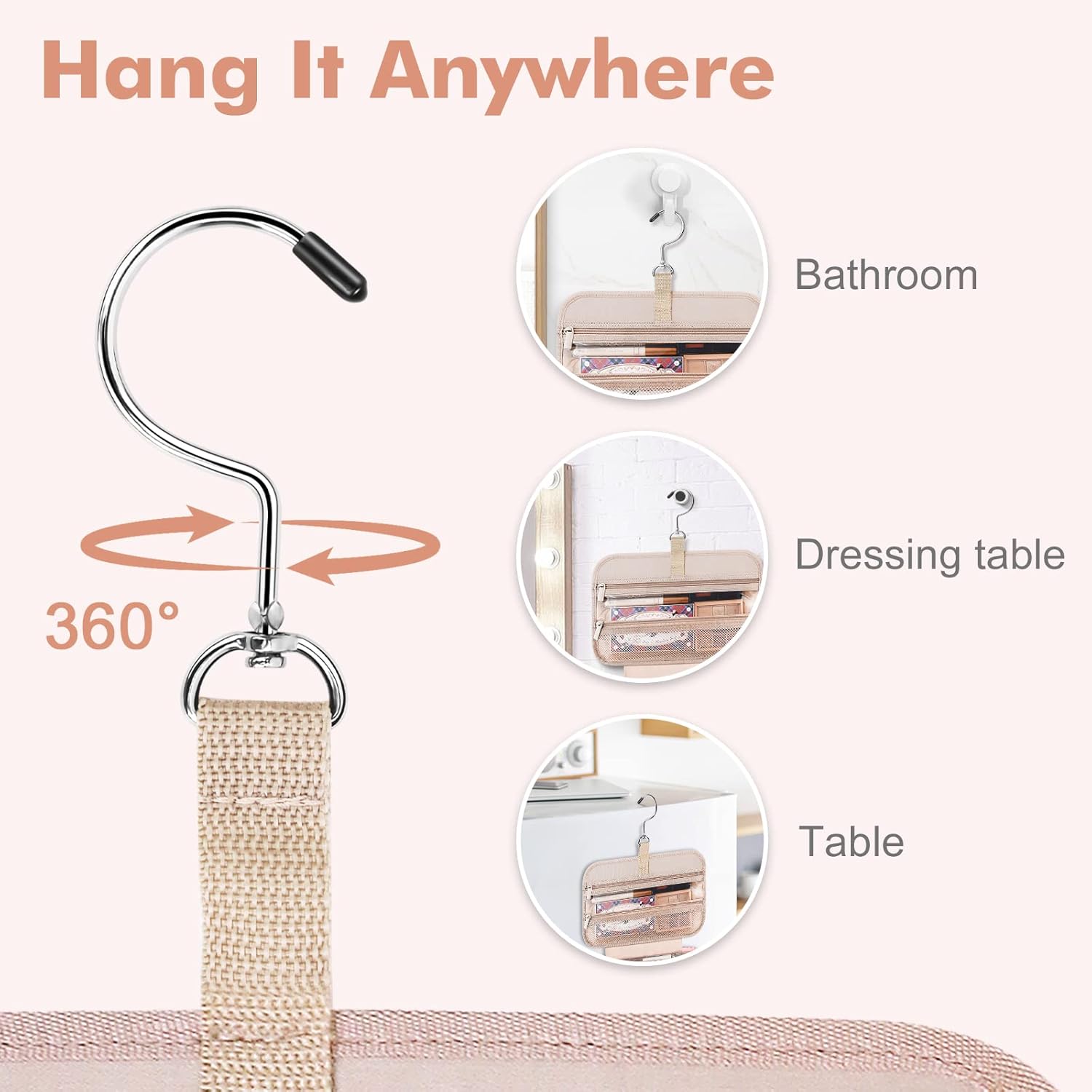 - Humanized Design: This cosmetic bag hook is made of 304 stainless steel metal material, which is sturdy and functional, you can hang the cosmetic bag on the towel rack, cloakroom, or any place where you need to display your toiletries and cosmetics. Travel toiletry bag with a U-shaped opening design is more convenient for you to pick up items