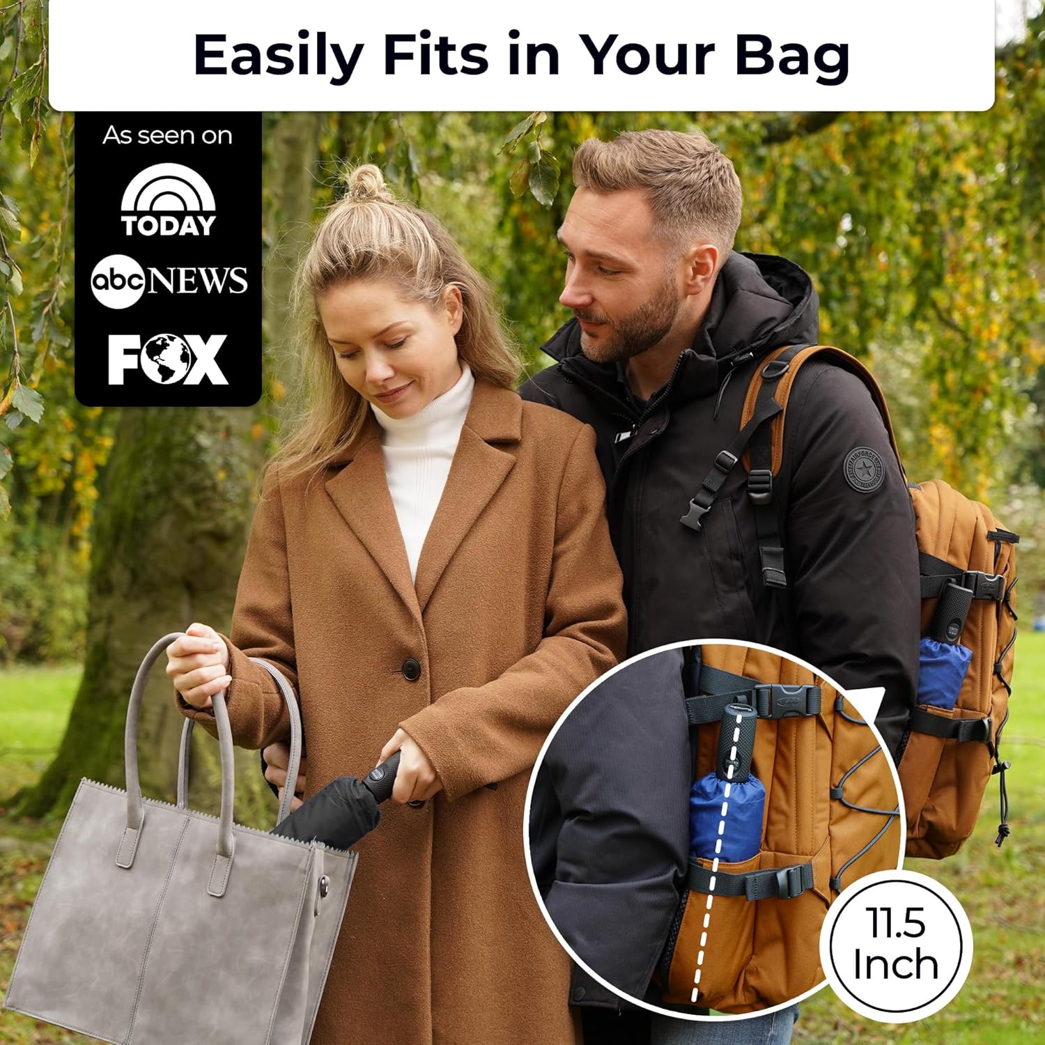 TUMELLA Strongest Windproof Travel Umbrella (Compact, Superior & Beautiful), Small Strong but Light Portable and Automatic Folding Rain Umbrella, Durable Premium Grip, Fits Car & Backpack