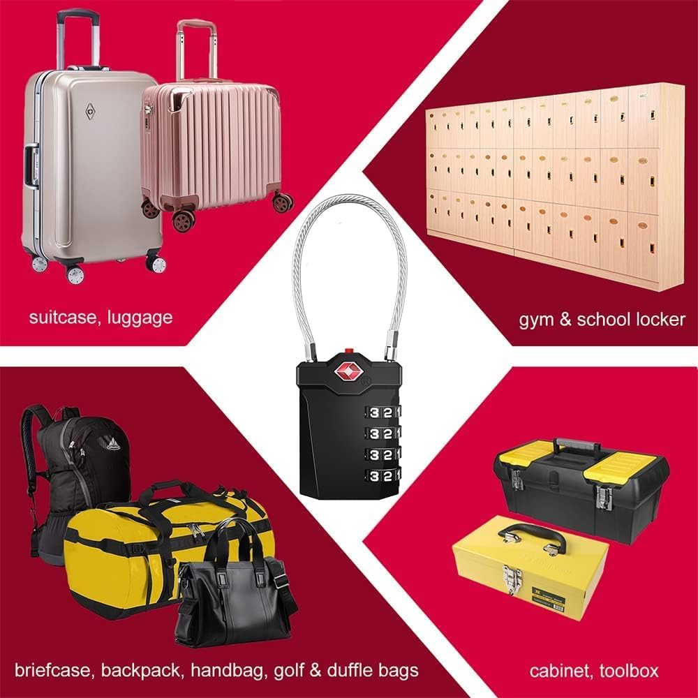 - TSA APPROVED: The 4 digit cable luggage lock is accepted and recognized by TSA, which allows the TSA screeners to unlock your baggage for security inspection with an official master key. With ZHEGE TSA cable lock, they have to re-lock before removing their key, so your belongings will always be protected. And if your luggage is ever opened, the red alert indicator at top will pop out to let you know as soon as you pick it up at the airport.