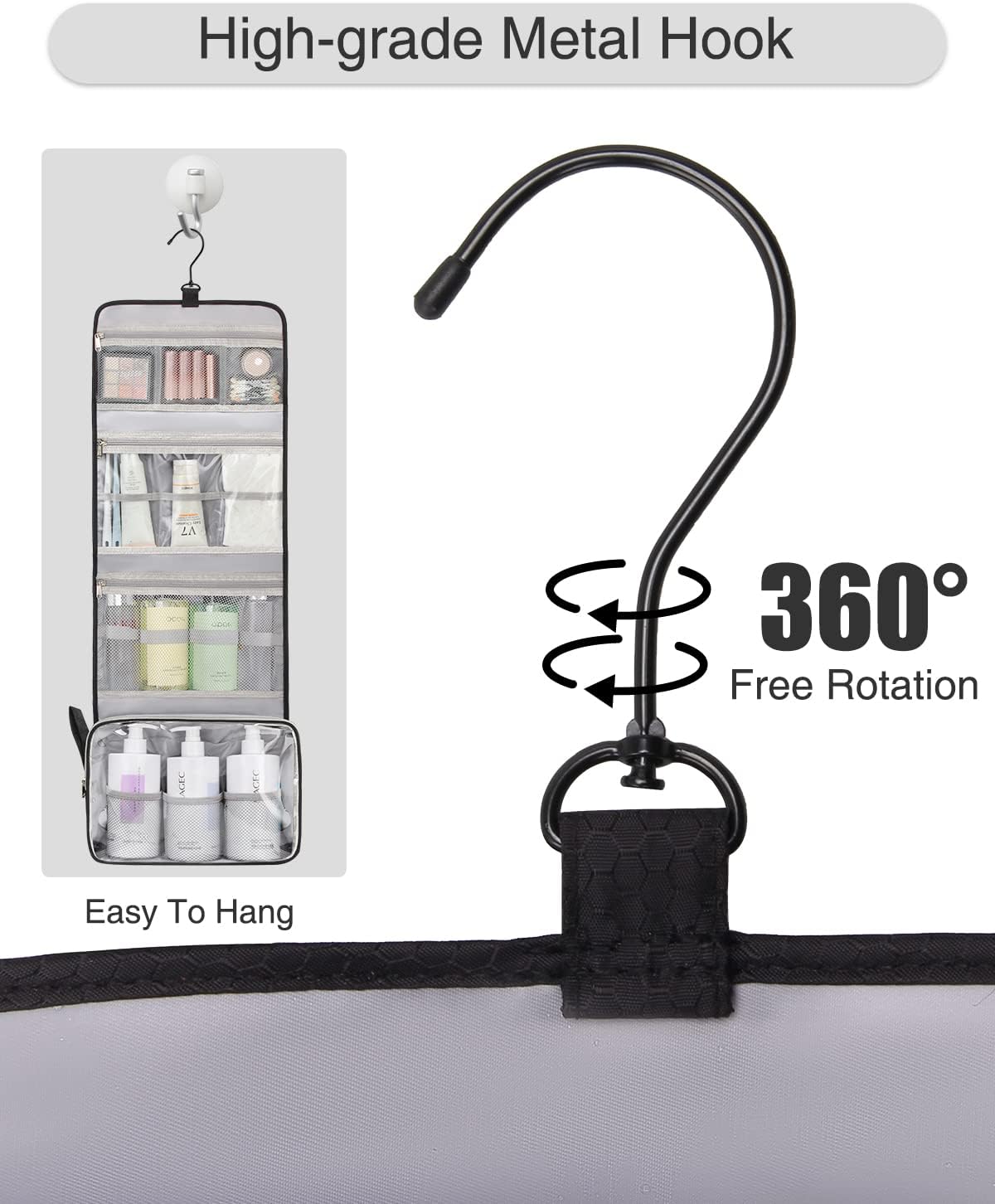 - 【CONVENIENT DESIGN】Stow-away 360 degree swivel non-slip metal hook for versatile hanging options. It fits bottles upright, helps eliminate spills, and makes a great travel organizer for your travel toiletries.