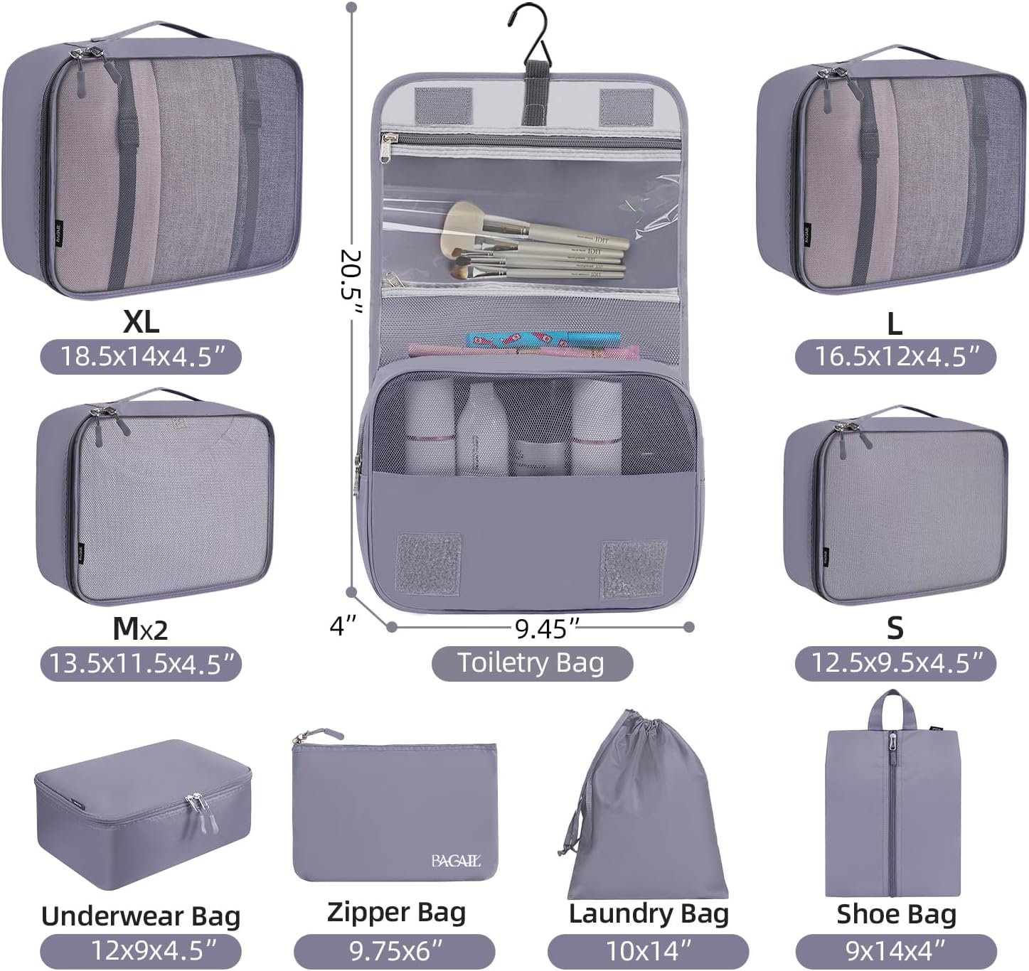 BAGAIL 6 Set/8 Set/10 Set Packing Cubes Various Sizes Packing Organizer for Travel Accessories Luggage Carry On Suitcase