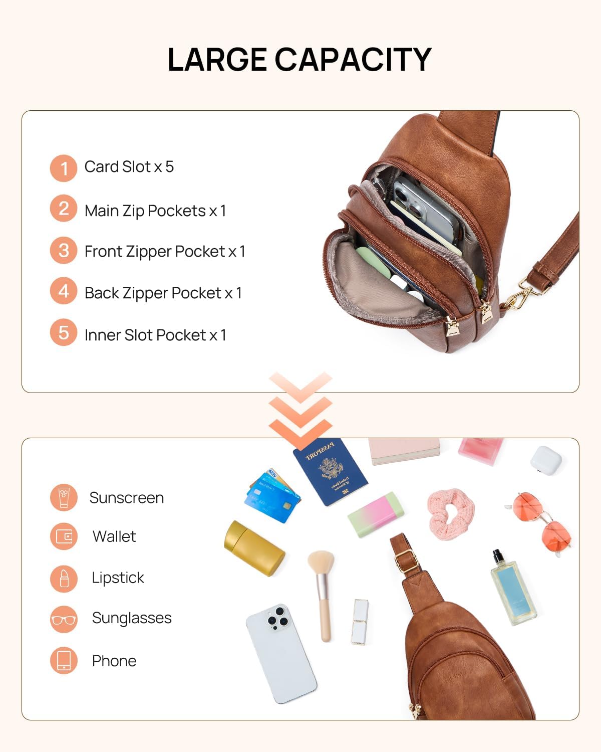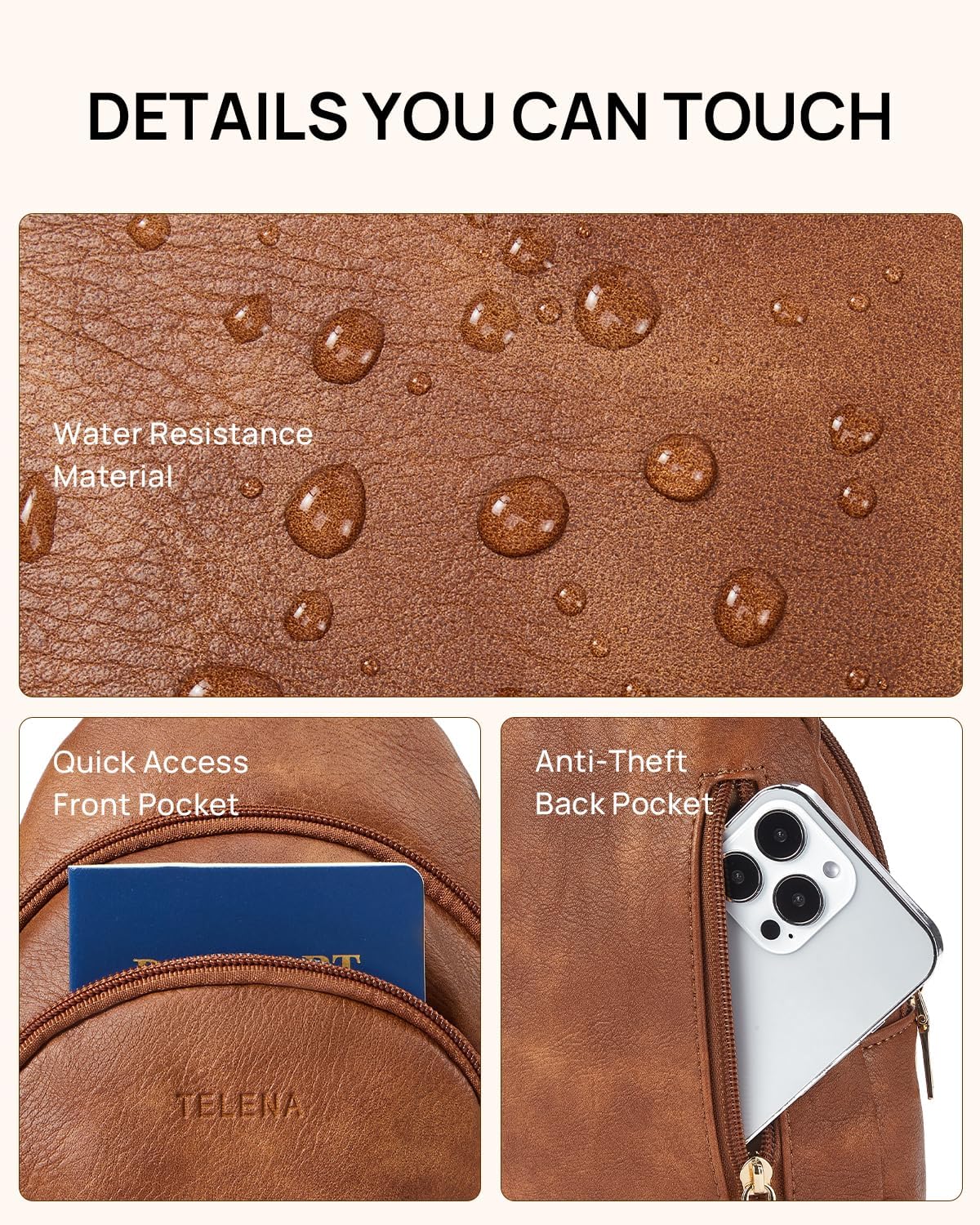 Telena Small Sling Bag for Women Leather Crossbody Fanny Packs Chest Bag for Women