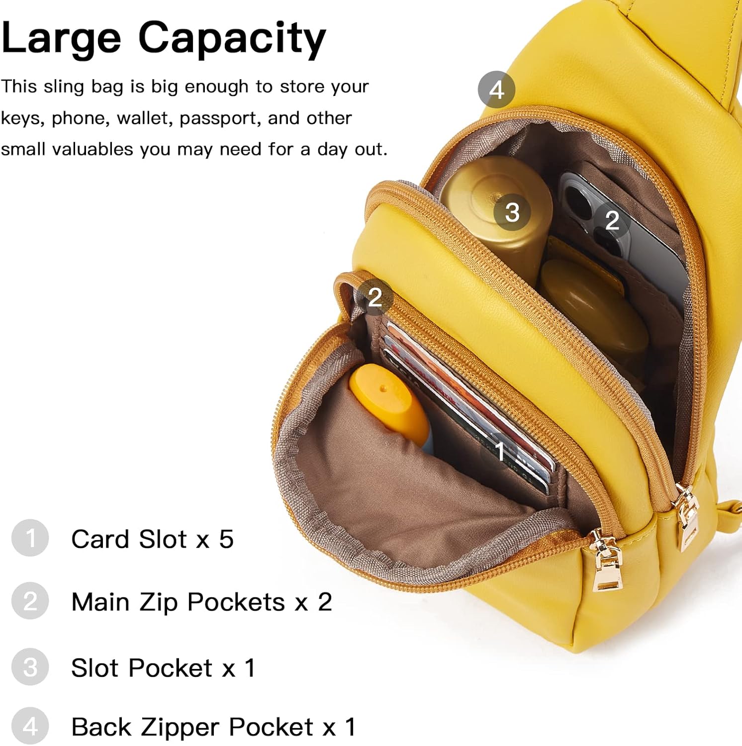 - Multi-way to Carry: This sling bag for women could be used as a small crossbody purse; sling bag; chest bag or shoulder bag. With adjustable straps, you can tighten or loosen them to fit your size or activity needs