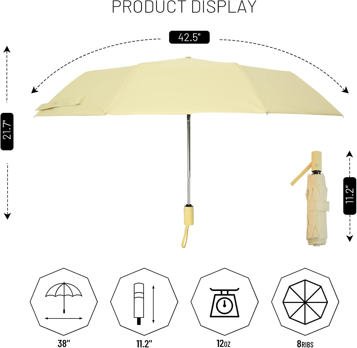 - Easy Carry: The upgraded umbrella frame design makes this umbrella a shorter folding size that can easily fit into briefcases and handbags. In addition, the umbrella is made of upgraded lightweight materials, making it lighter in weight and reducing your travel burden.