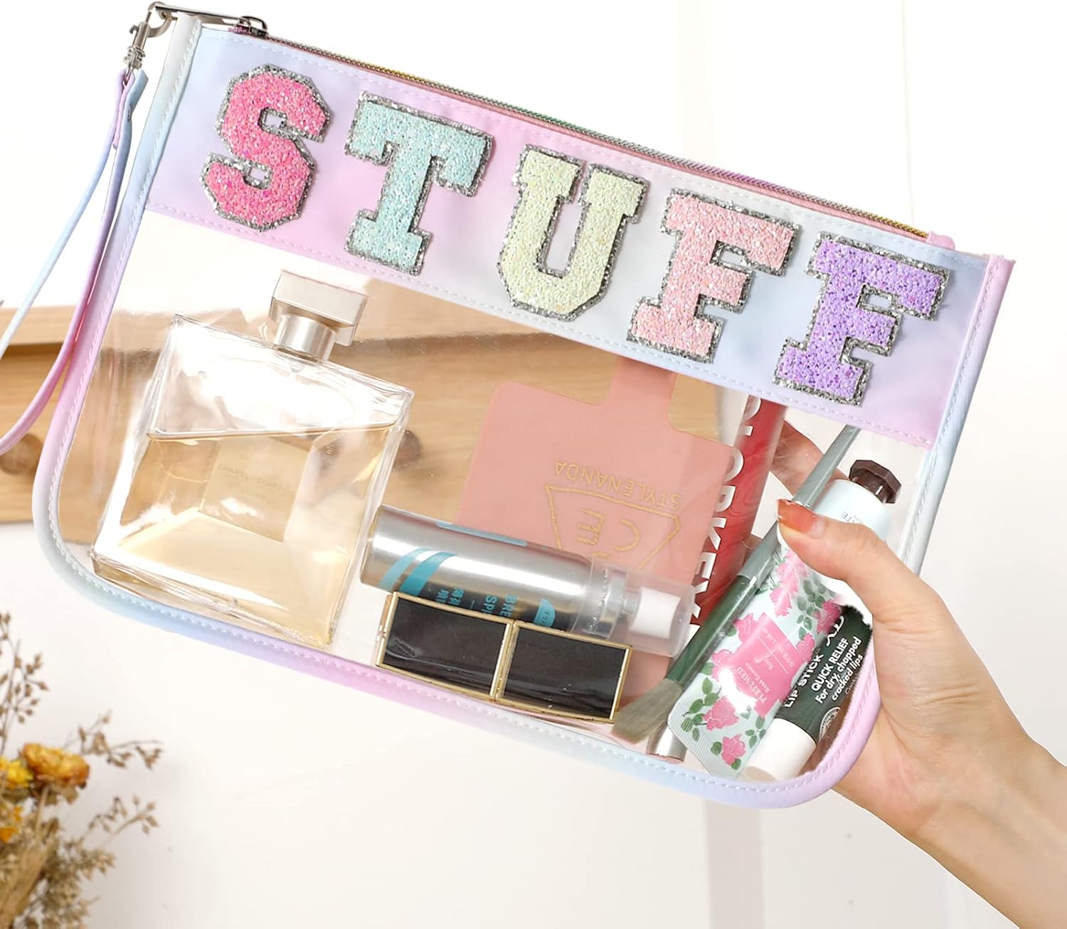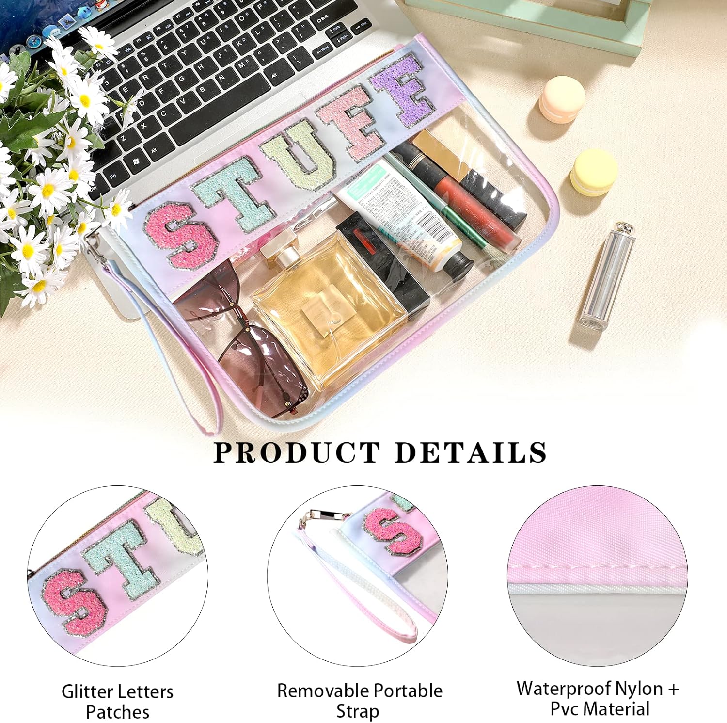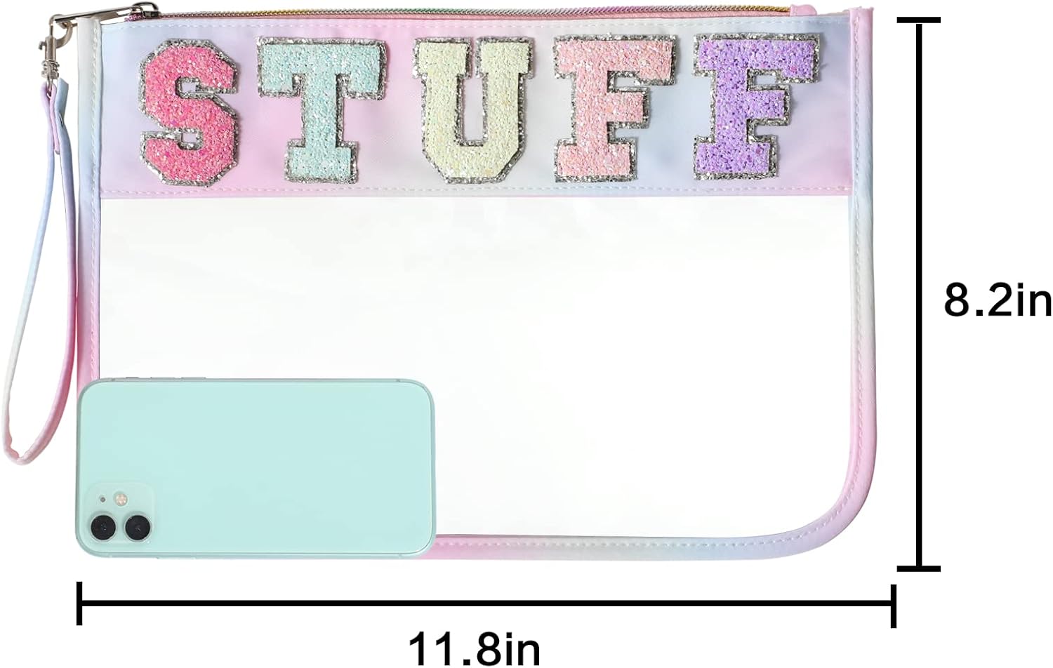 - [Chenille Letters]: The chenille letter patches on our clear pouches are sewn on, fuller and brighter than the other letters, and will not fade or fall off. It makes your bag more eye-catching