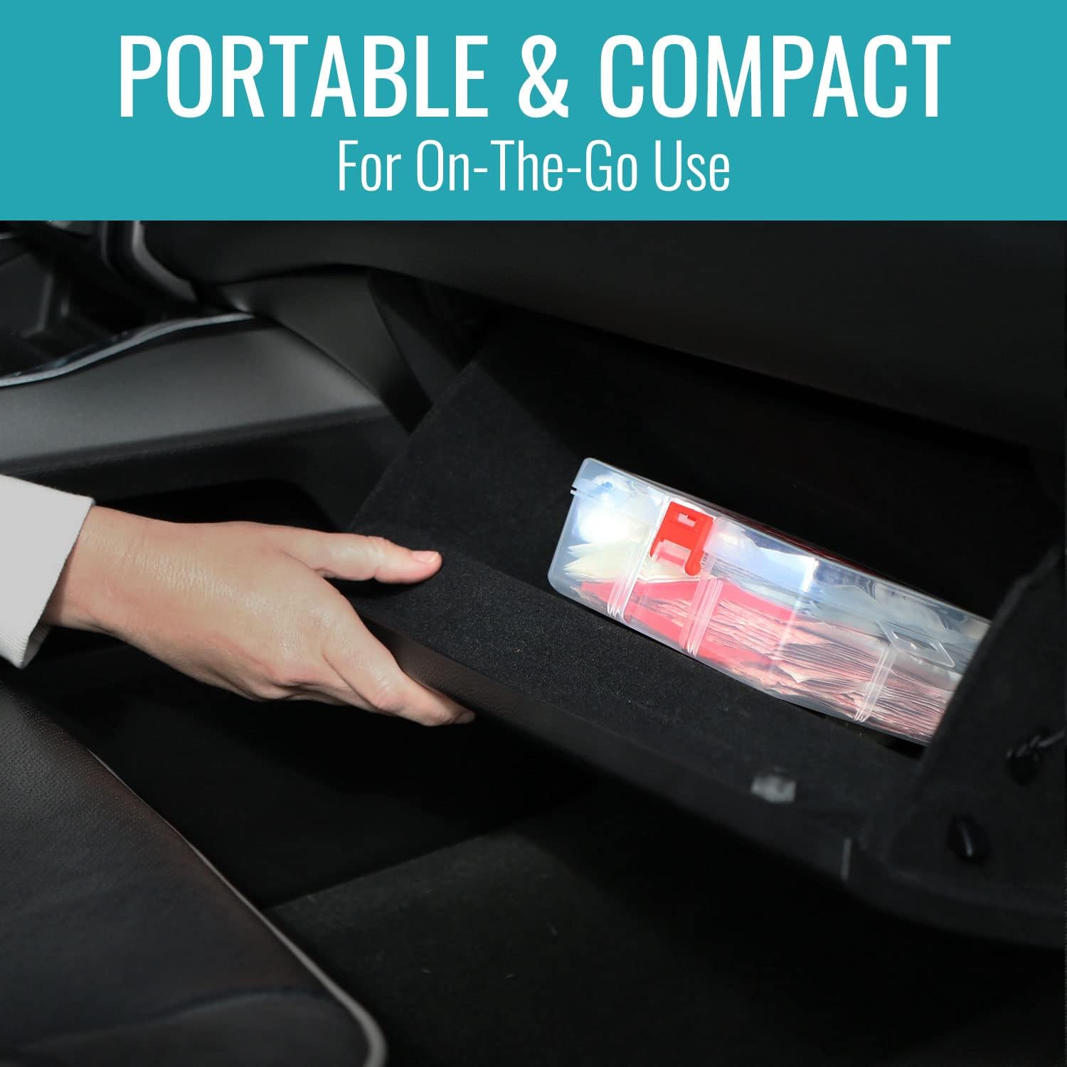 - The 175-piece first aid kit is incredibly portable and is perfect for your car, bookbag, carry-on luggage, desk drawer, handbag and more!