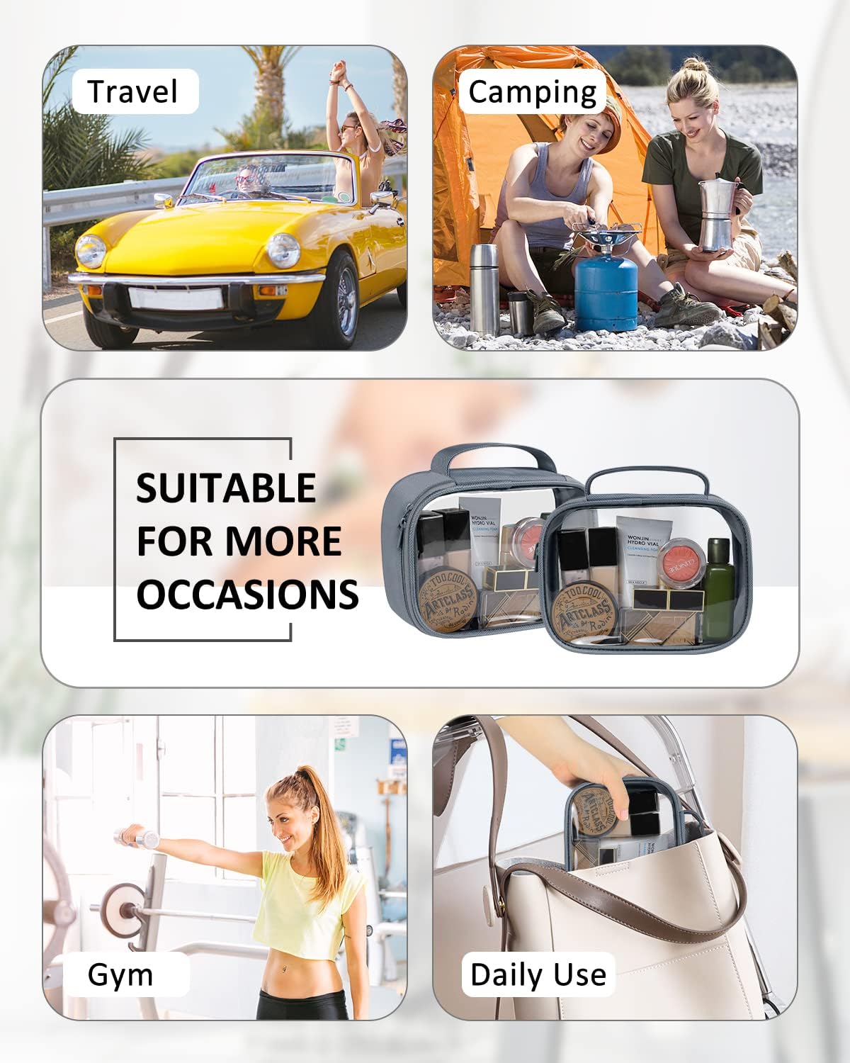 - 【High-quality Makeup Bag】 Made of premium clear PVC, strong polyester fabric and SBS brand zipper. Unlike some similar toiletry bags which are made of inferior material. Our bags are more clear, more sturdy, more stylish. No foul plastic smell, take care of your health
