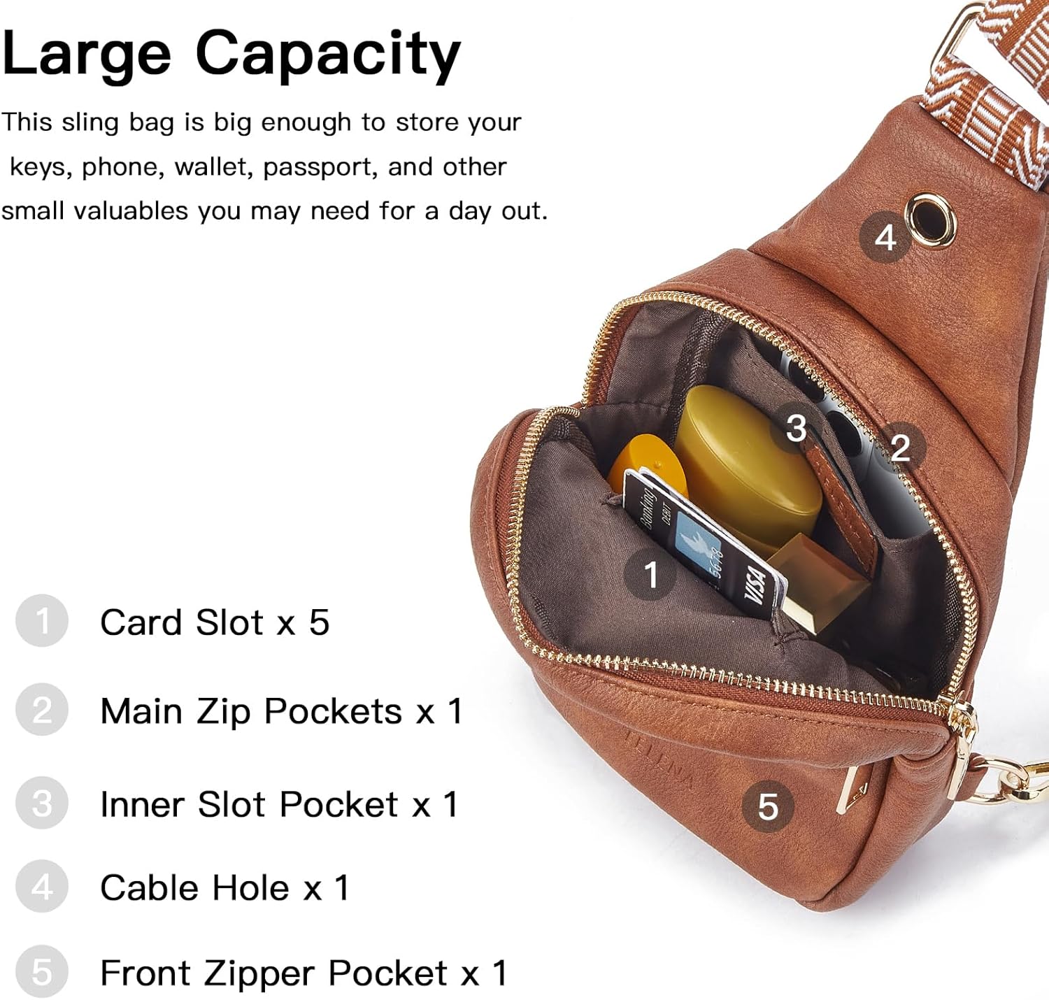 Telena Small Sling Bag for Women Leather Crossbody Fanny Packs Chest Bag for Women