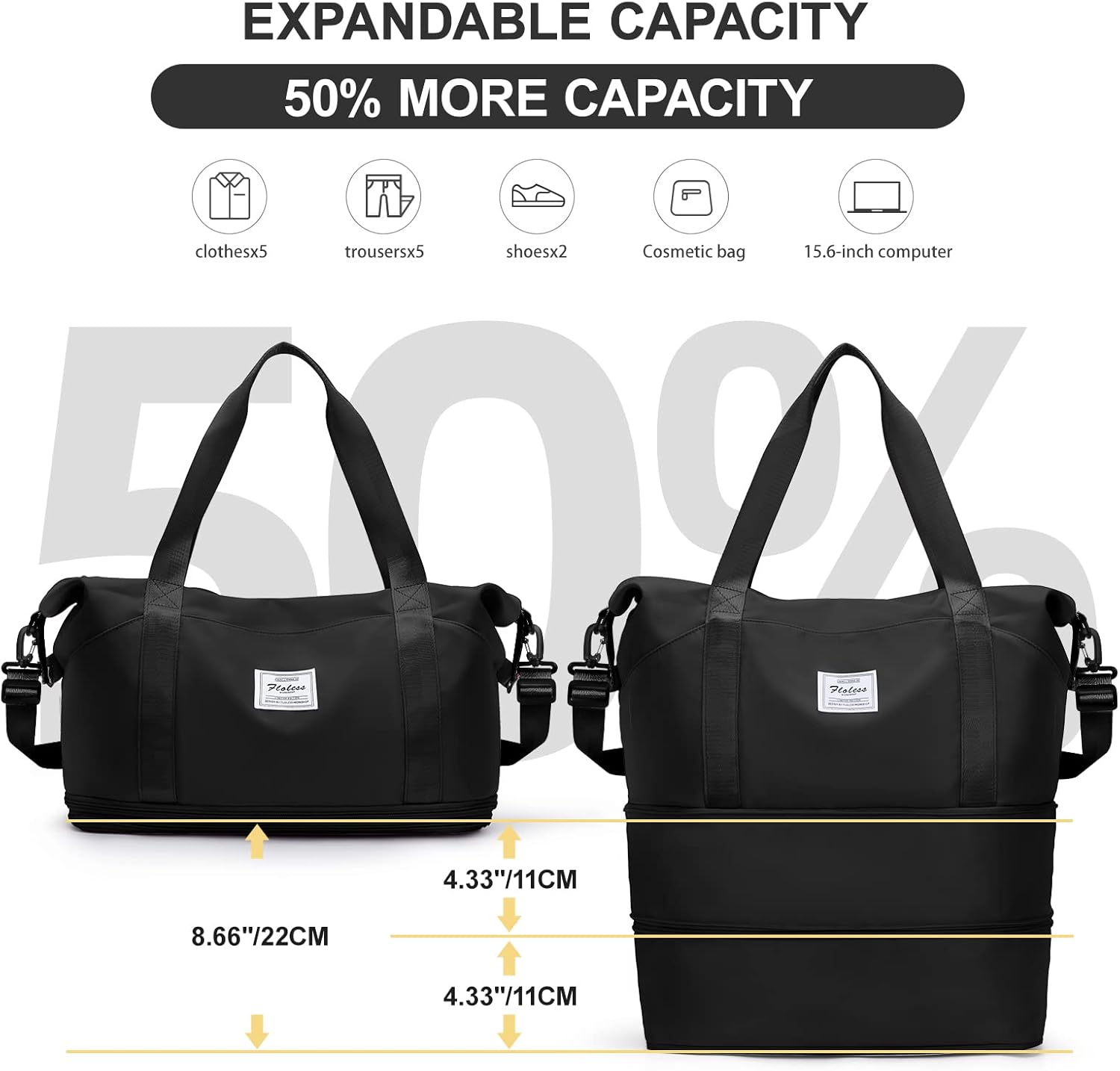• 【Double Expansion Capacity】The overnight bag for women has Large Capacity. Ordinary size: 41*26*22cm, one-level expansion: 41*37*22cm, two-level expansion: 41*48*22cm. Its capacity can up to 40L and can hold 6 to 8 pieces of summer clothes.