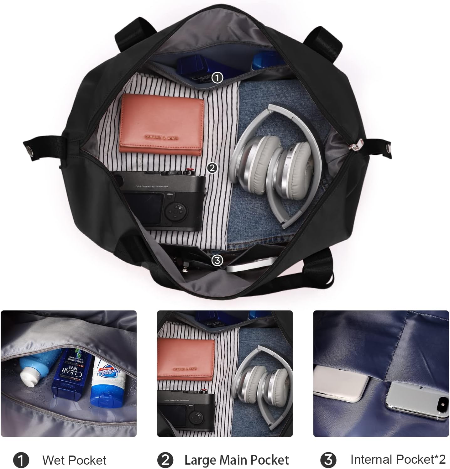 Travel Duffel Bag, Sports Tote Gym Bag, Shoulder Weekender Overnight Bag for Women